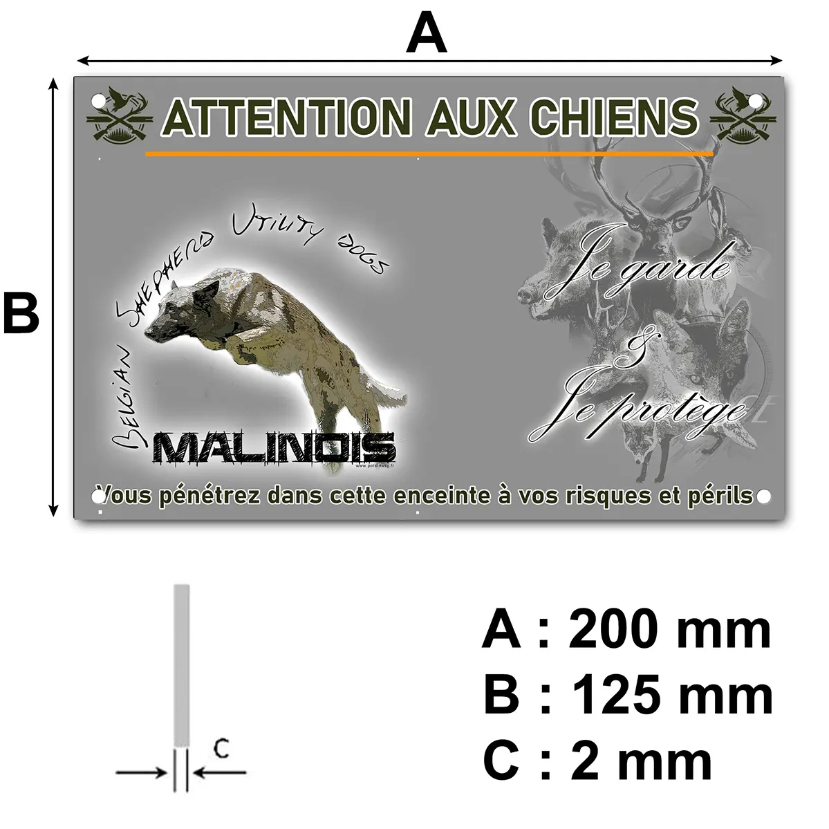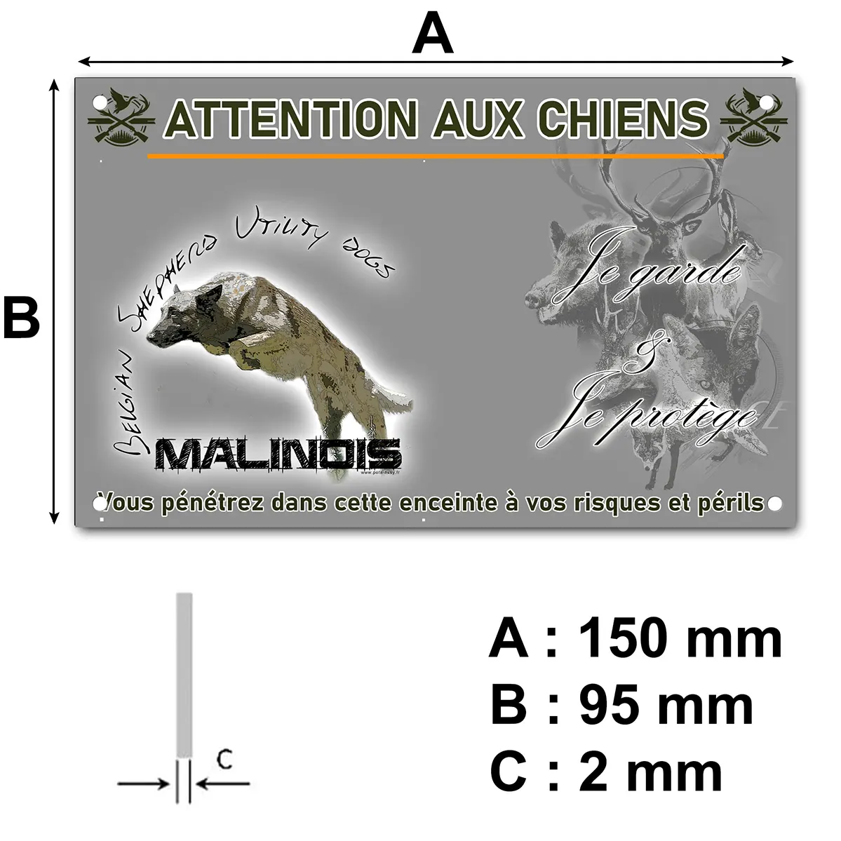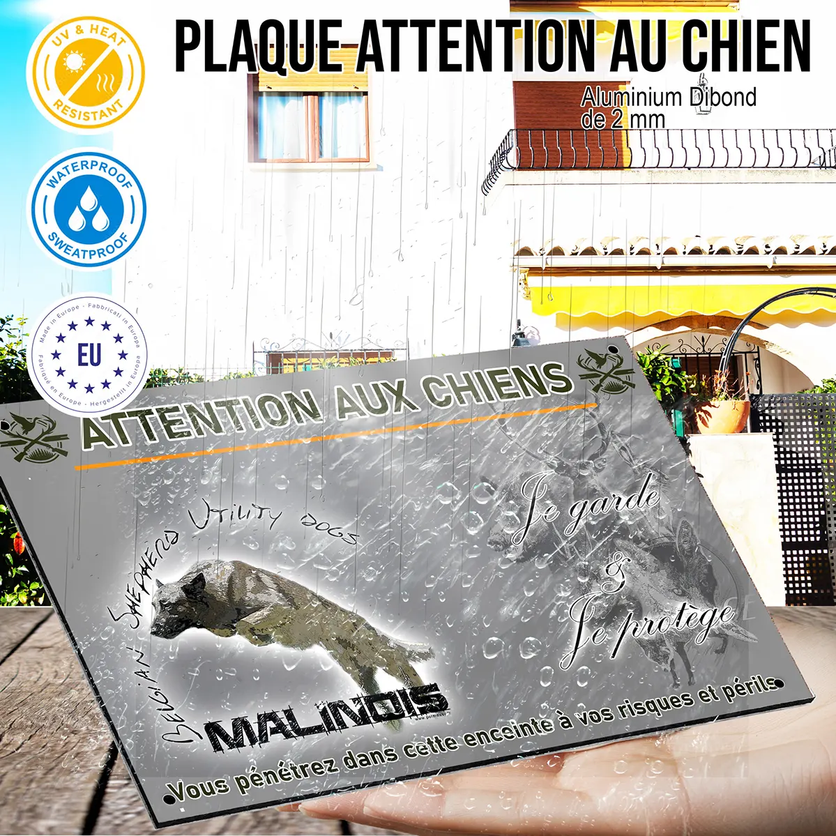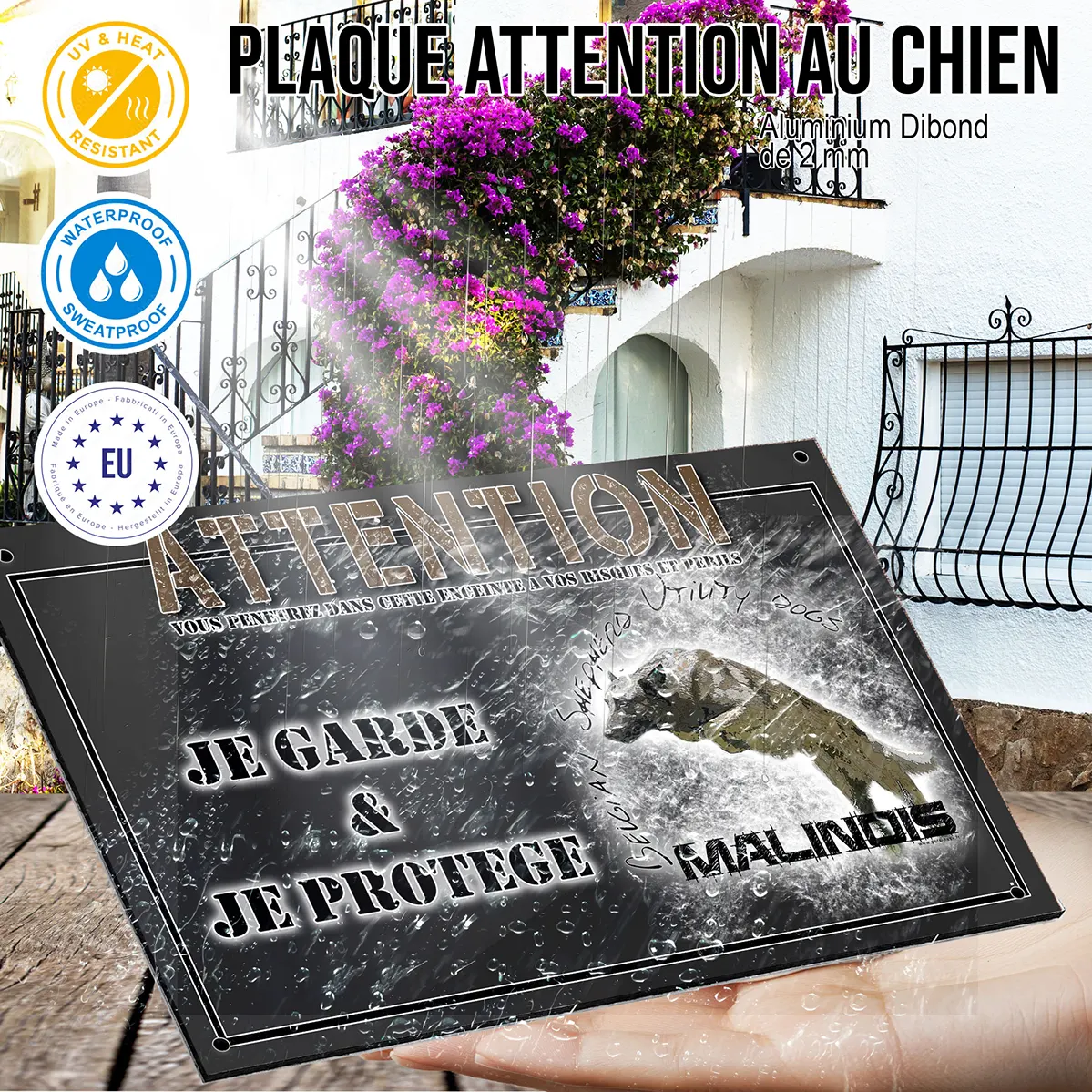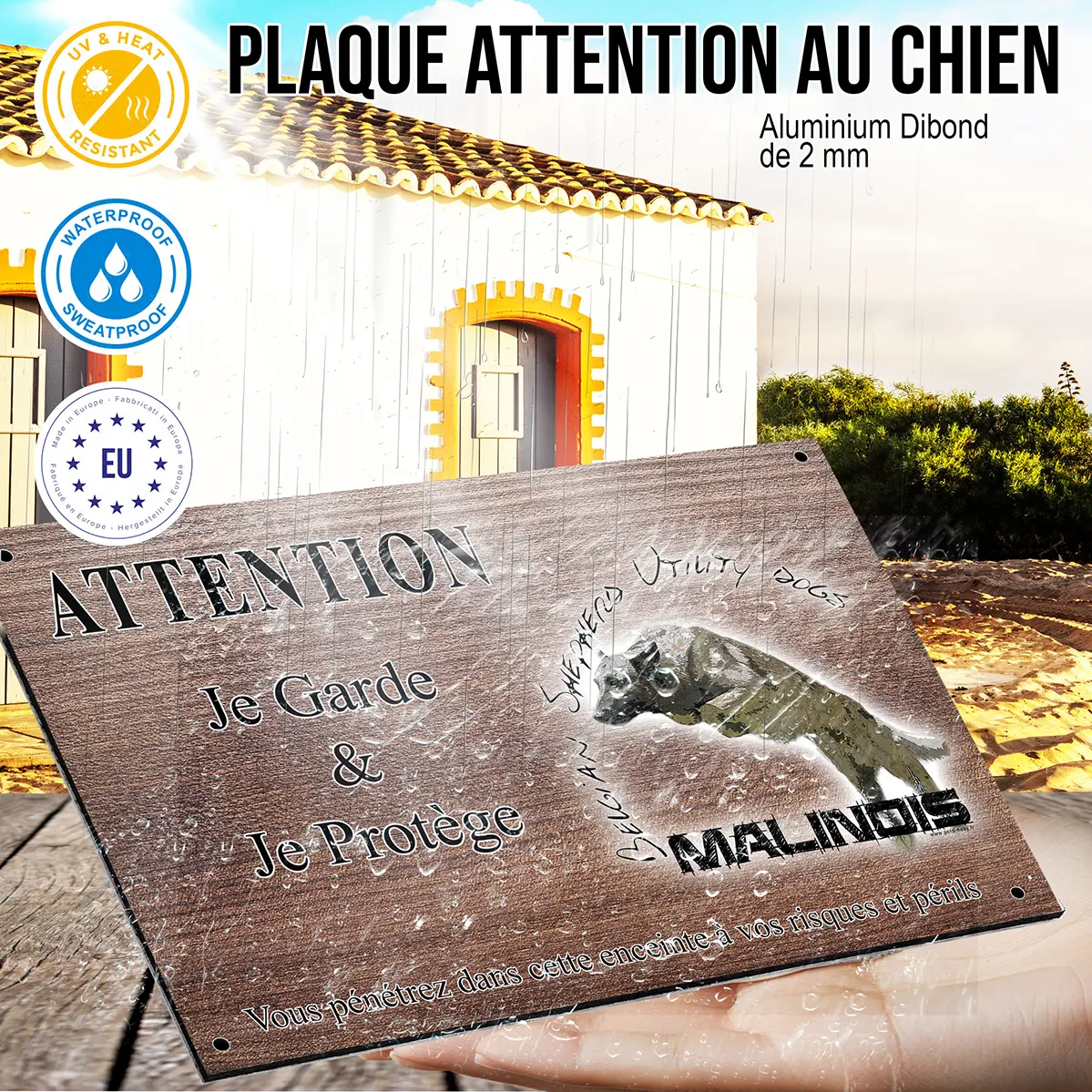Plaque attention au chien Malinois De Mondioring métal résistant extérieur