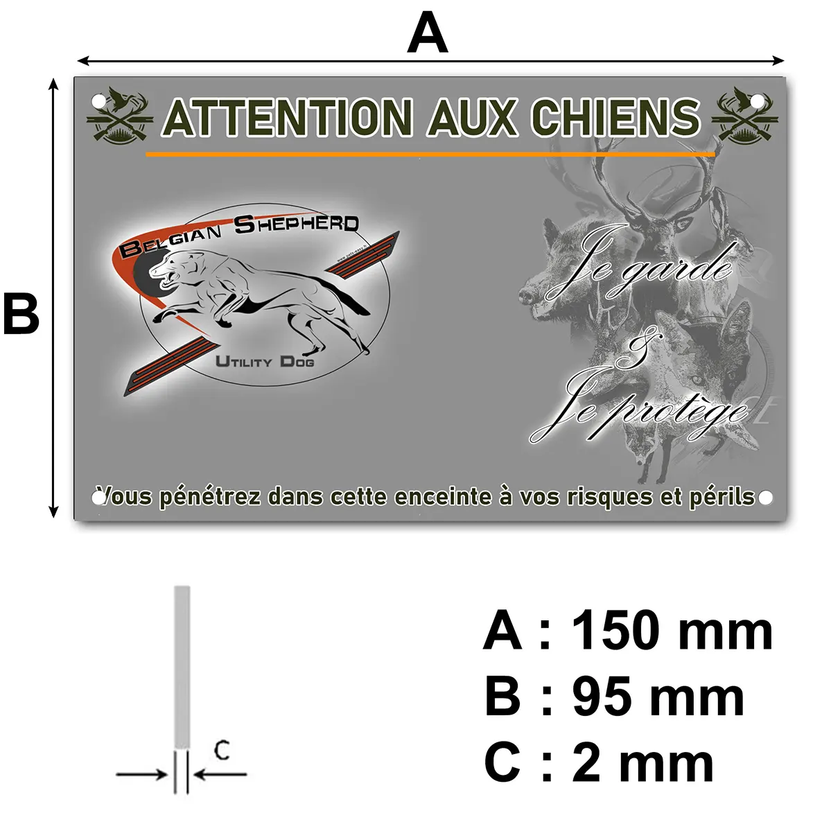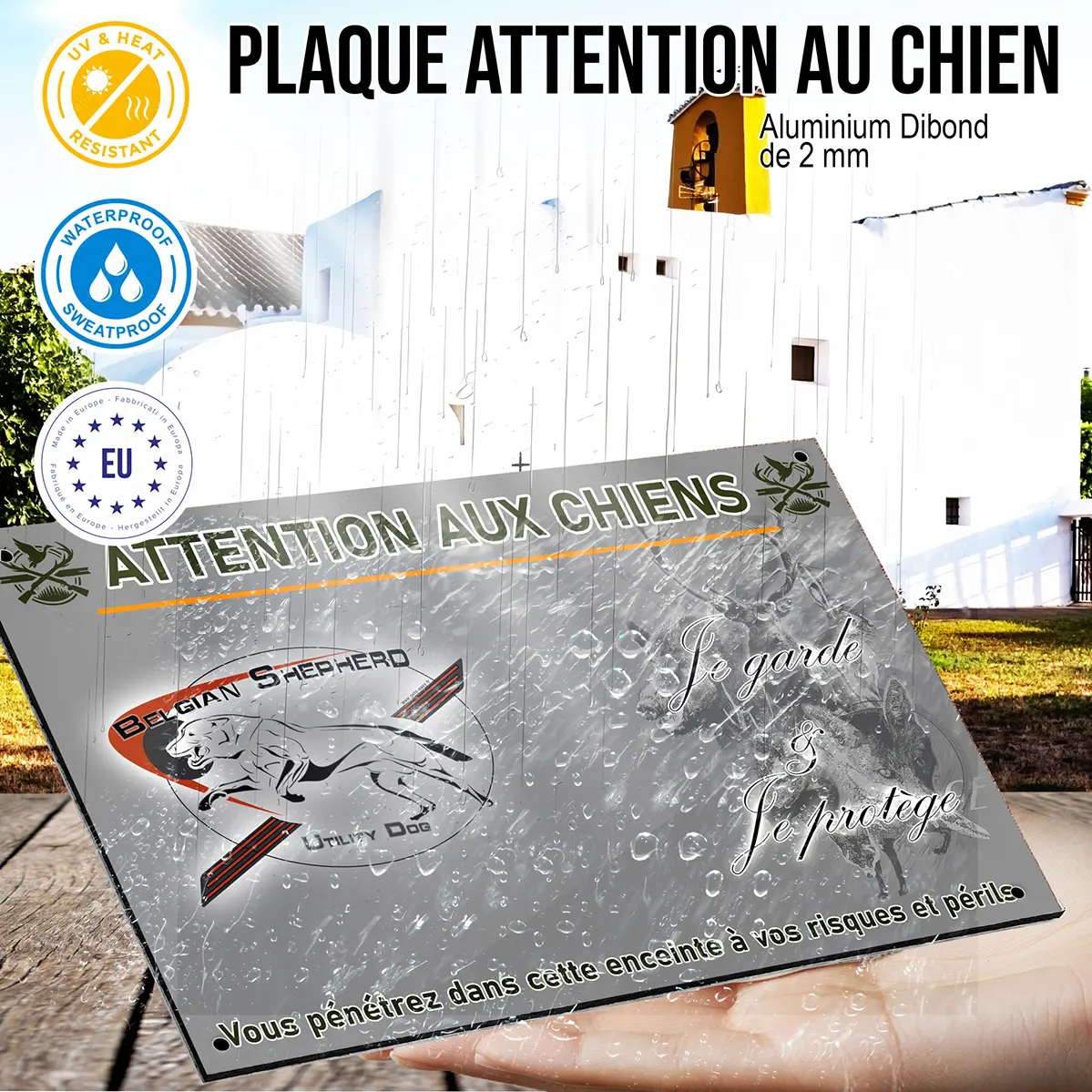 Au-delà de son aspect protecteur, cette plaque Attention au chien s’impose aussi comme une pièce de décoration originale. Son illustration stylisée du Belgian Shepherd et son design moderne s’intégreront harmonieusement à vos extérieurs. Offrez à votre abri, portail ou clôture une touche à la fois élégante et rassurante, tout en prévenant efficacement toute intrusion grâce à une signalétique claire et attractive.