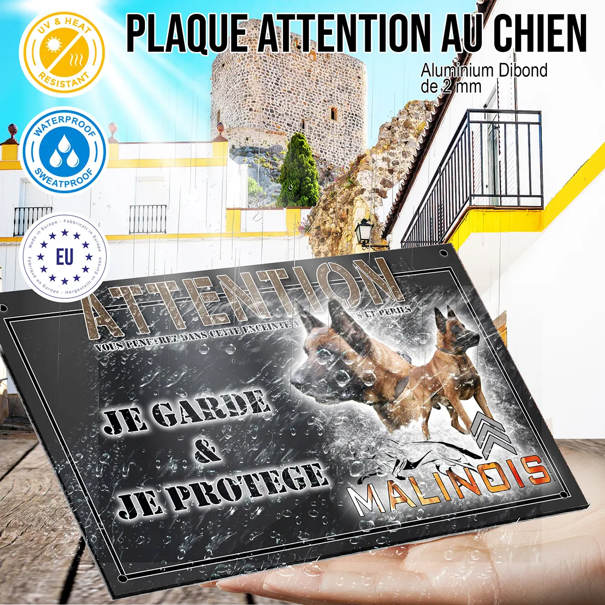 Plaque attention au chien Malinois De Mondioring métal résistant extérieur