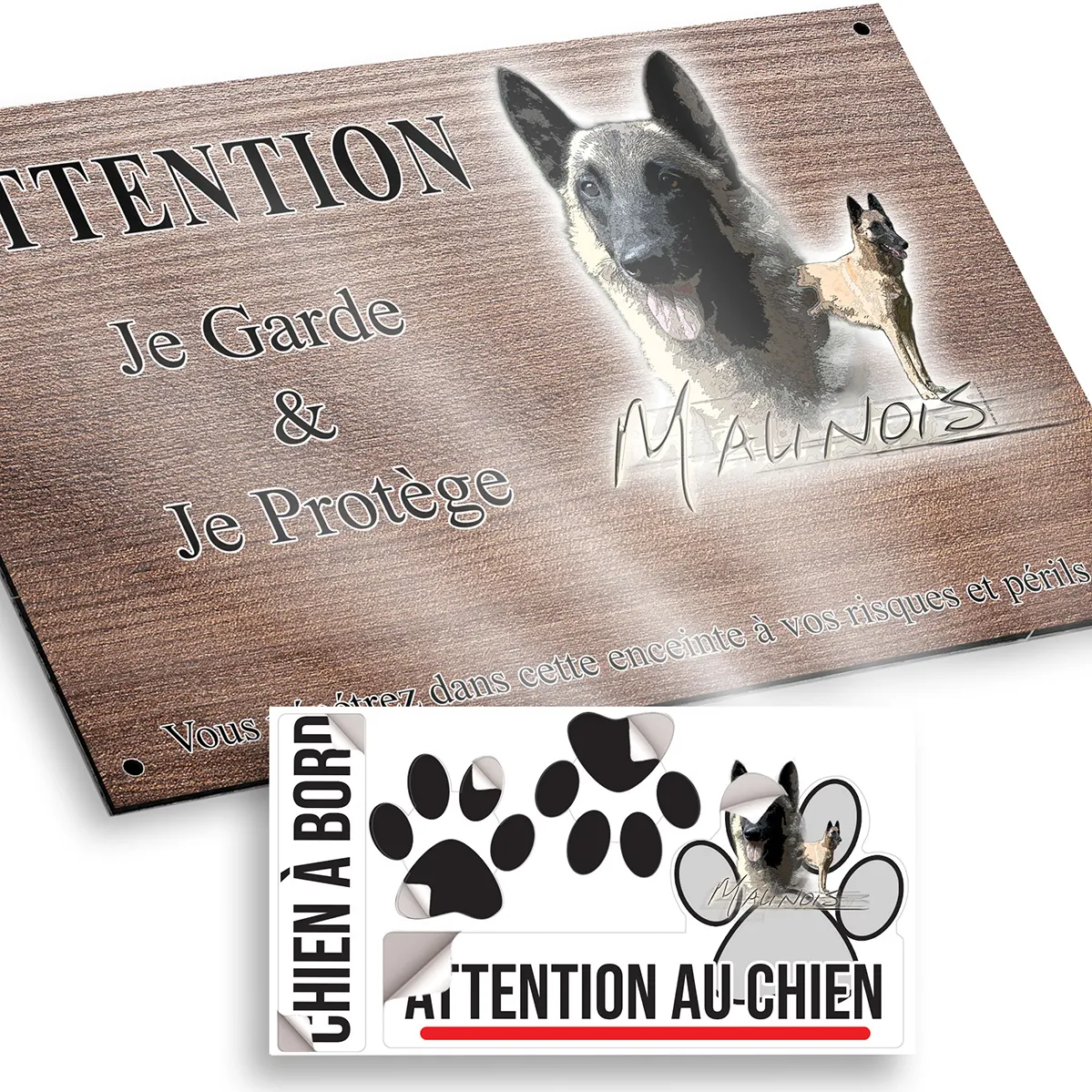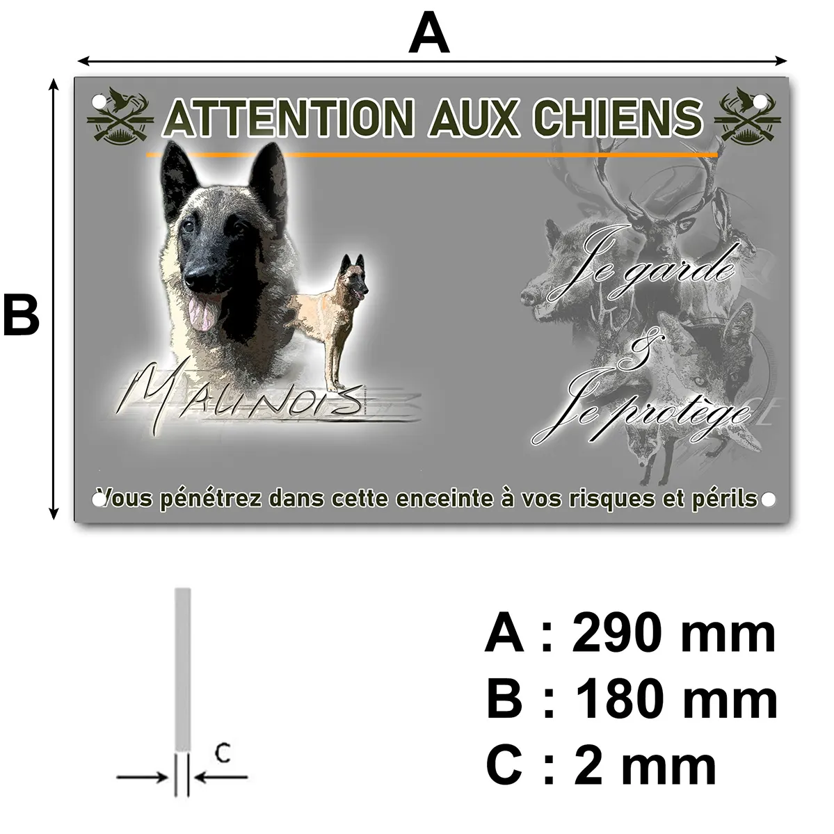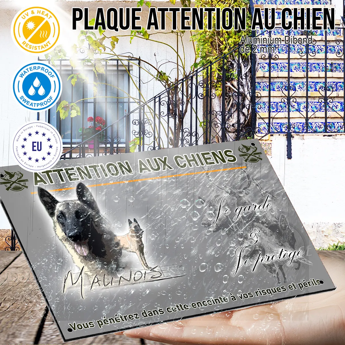 - Plaque Attention au chien malinois noir : signalétique claire et dissuasive