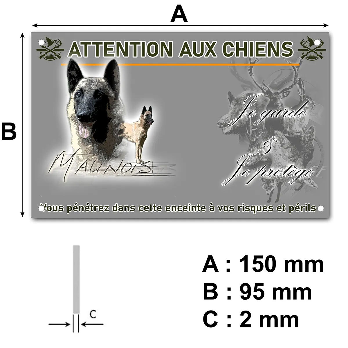 Plaque attention au chien Malinois Noir métal résistant extérieur