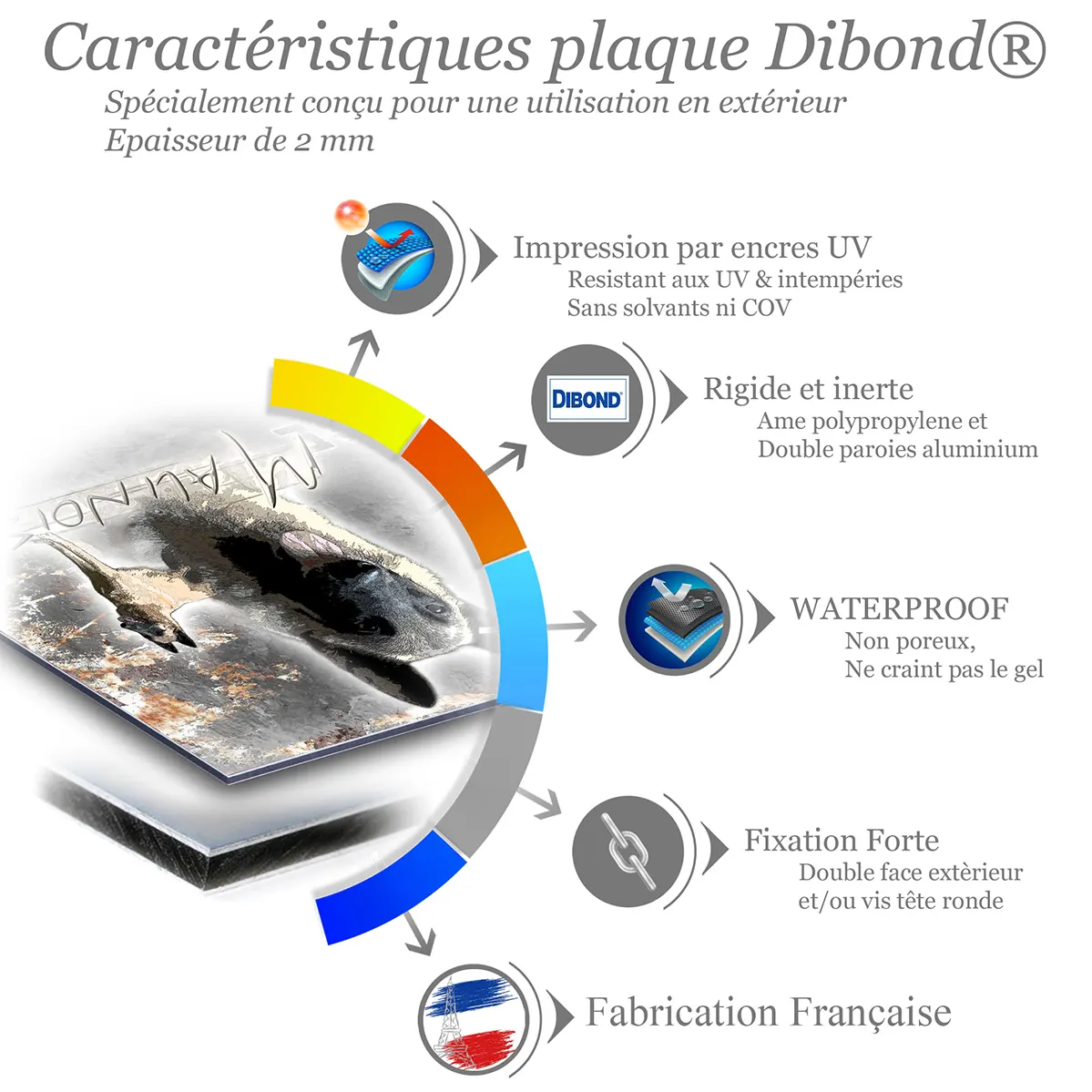 Oui, la plaque est fabriquée en aluminium Dibond de 2 mm et imprimée en UV. Elle ne craint ni la pluie, ni le soleil, ni le gel. Elle peut rester fixée dehors toute l’année sans perdre ses couleurs.