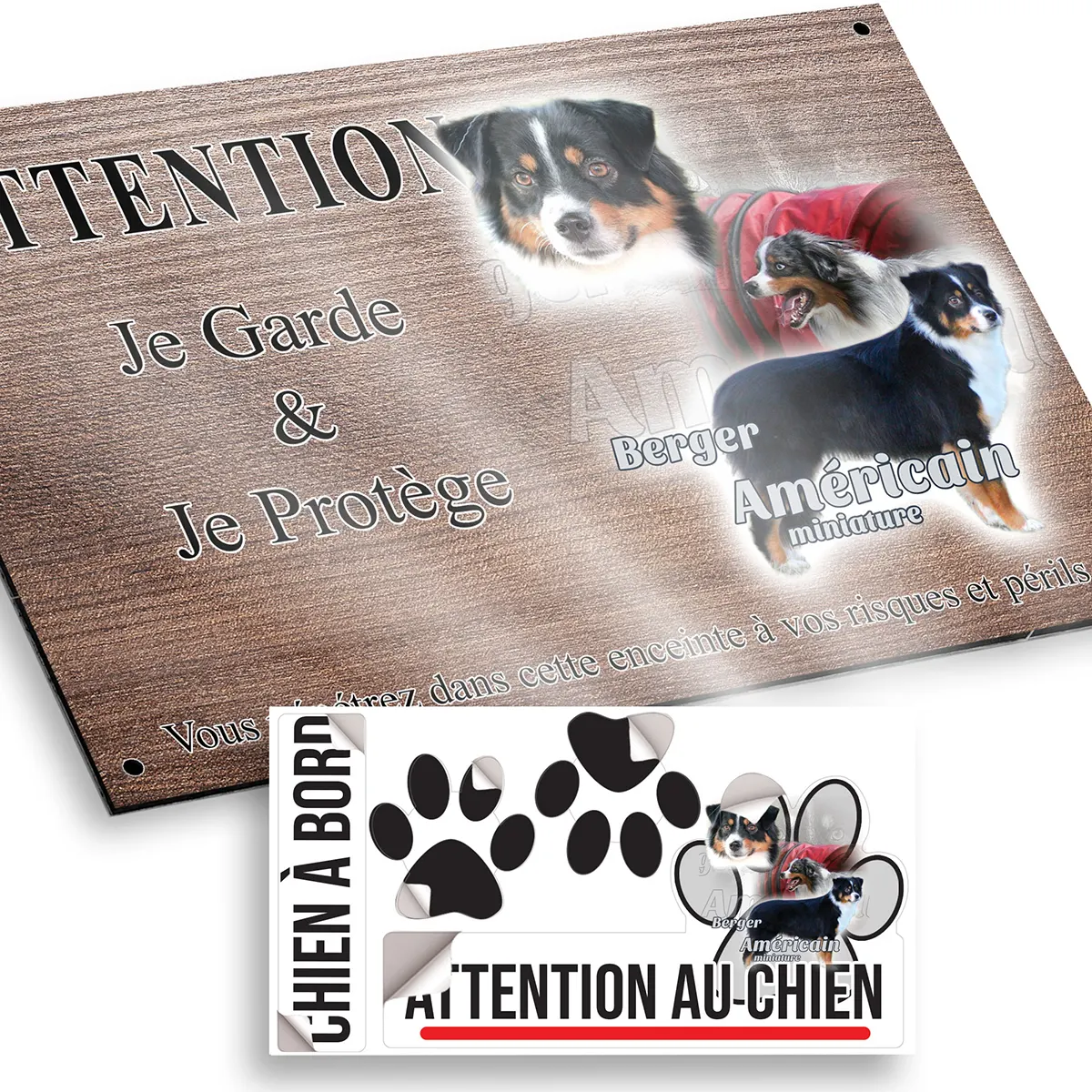 Pour en savoir plus sur notre gamme de plaque attention au chien mini berger australien