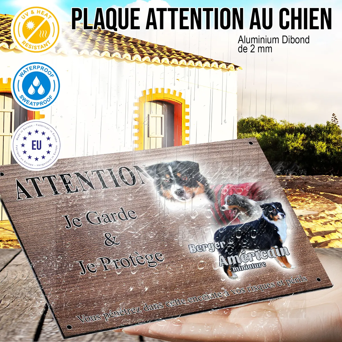 - Plaque Attention au chien mini berger australien : signalétique claire et dissuasive