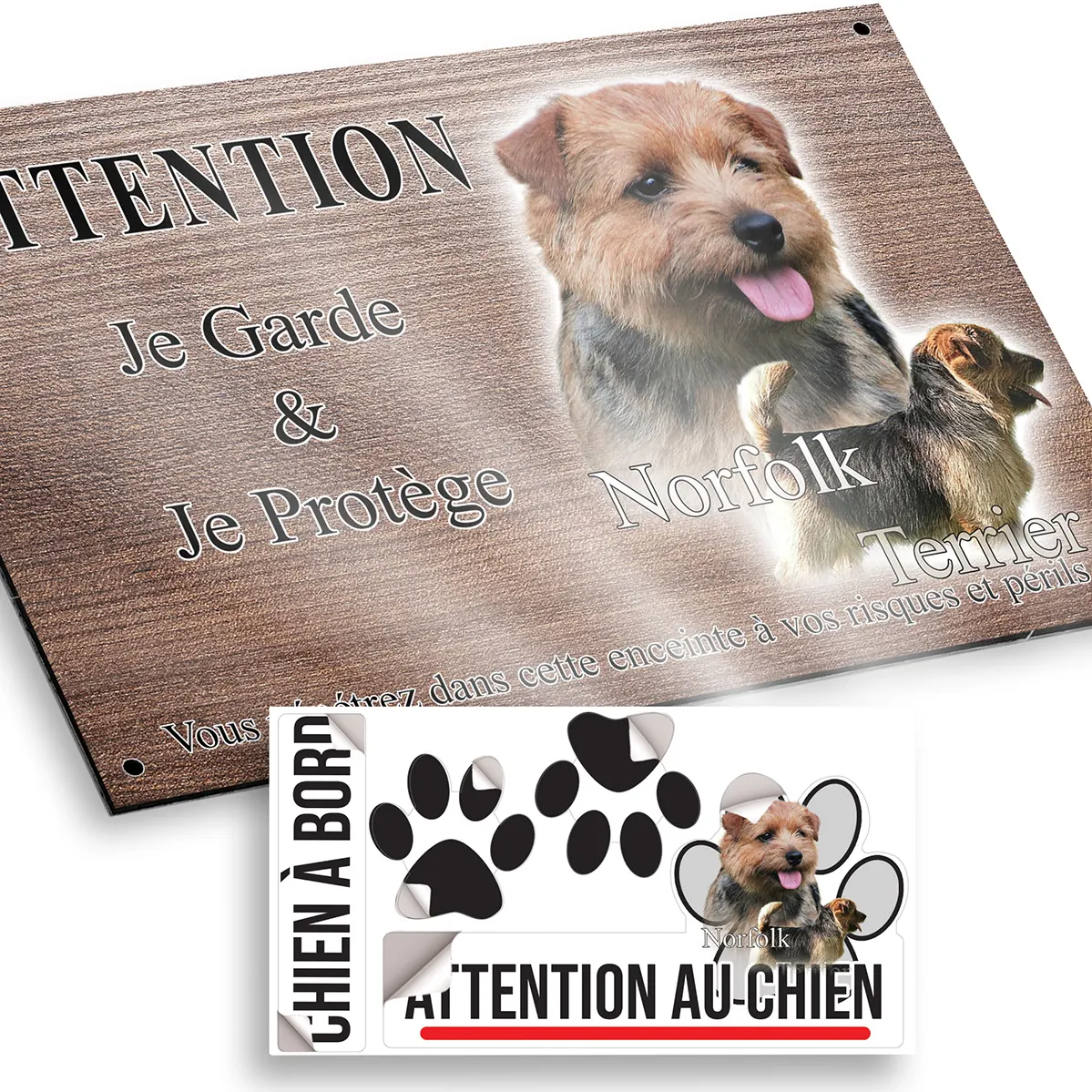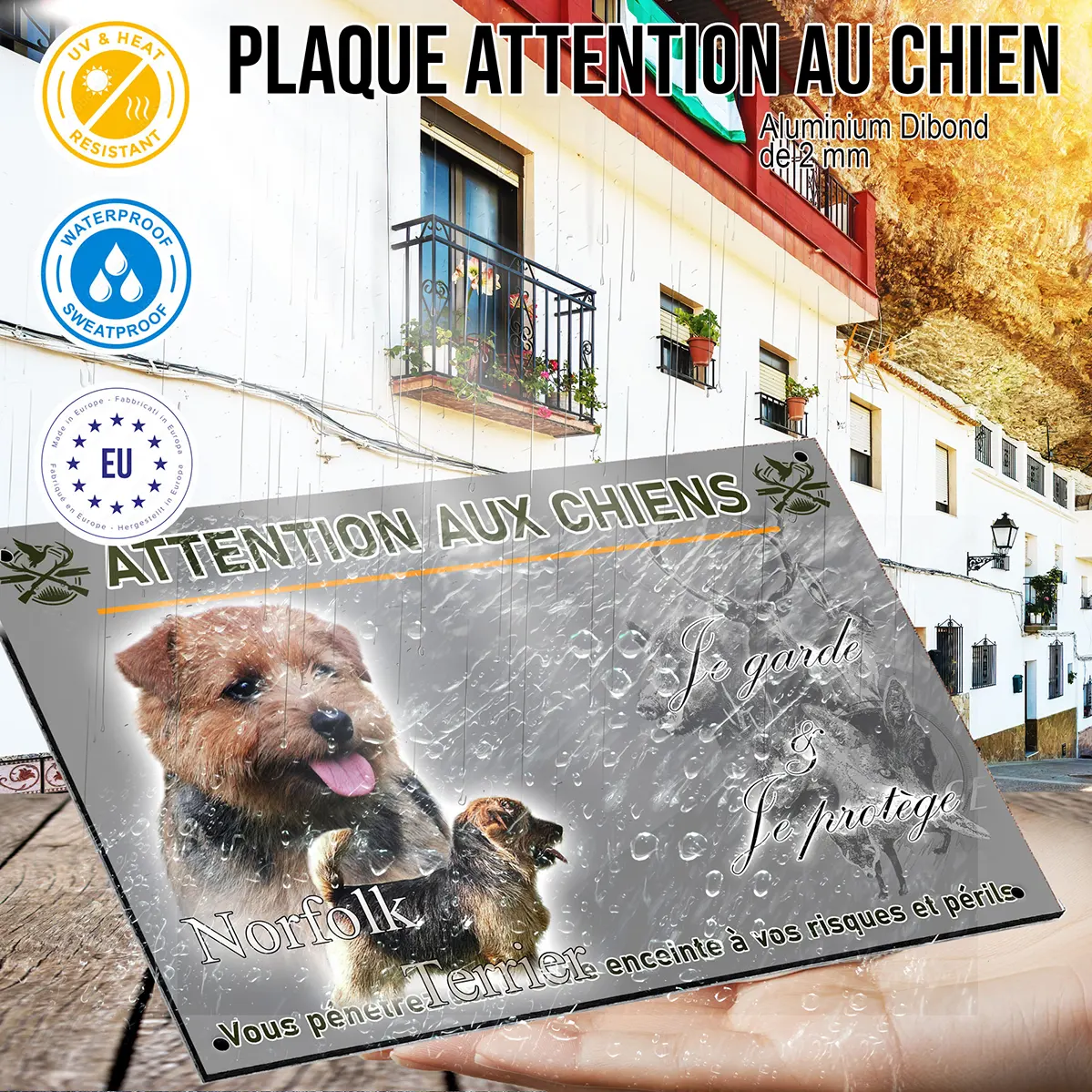 - Plaque Attention au chien norfolk terrier : signalétique claire et dissuasive