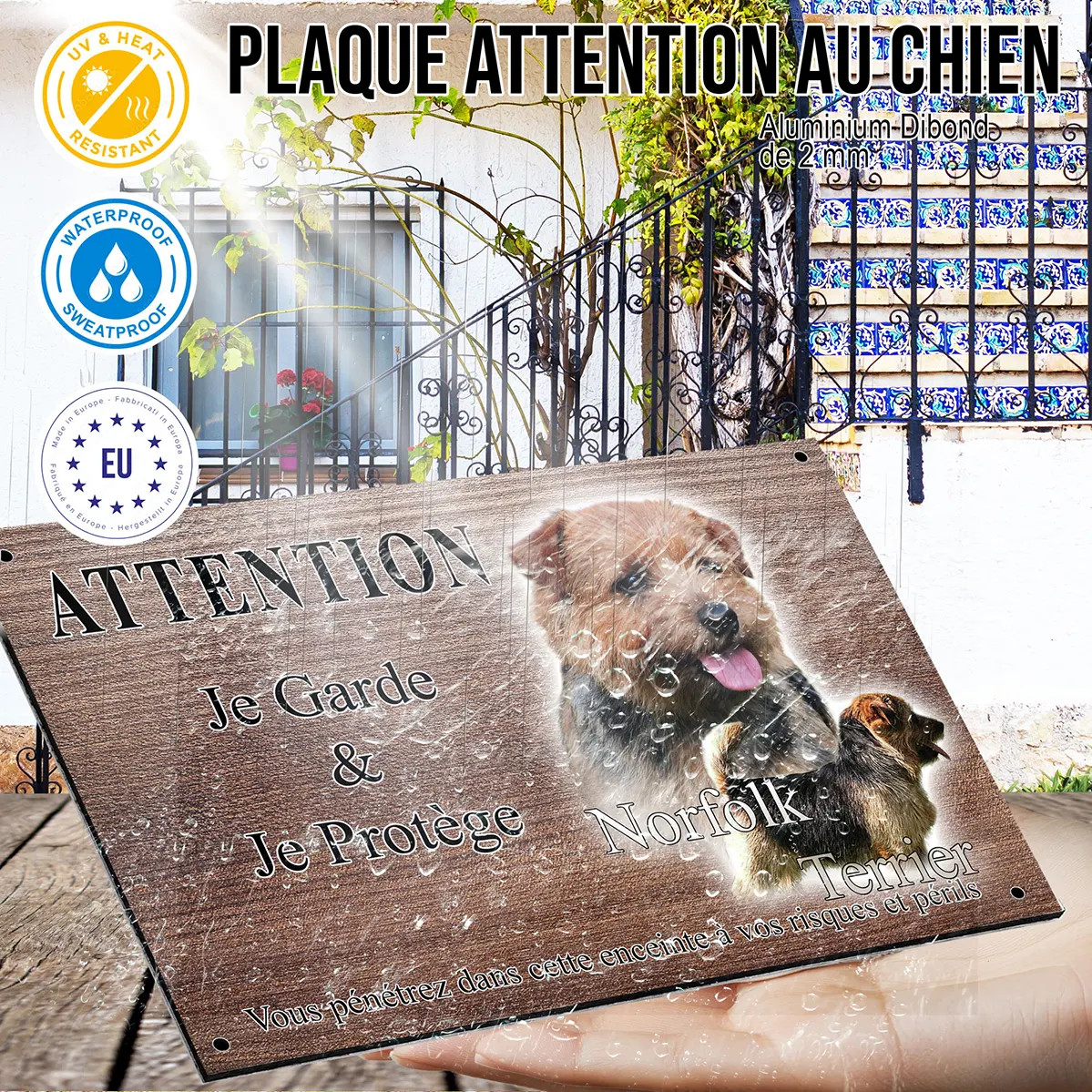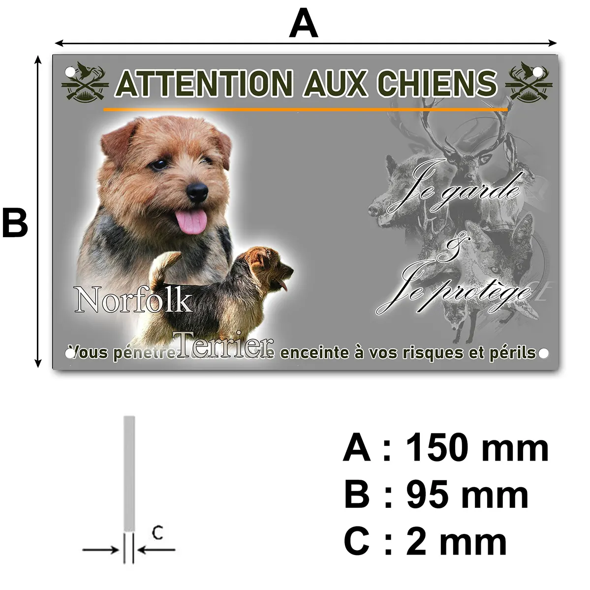 Plaque attention au chien Norfolk Terrier métal résistant extérieur