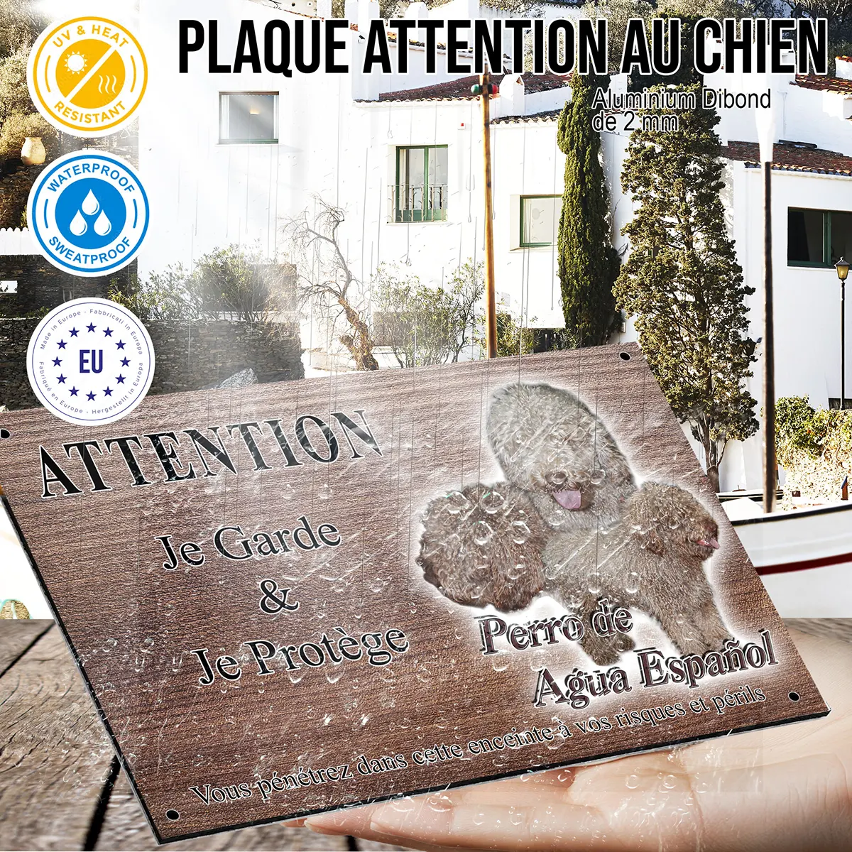 - Plaque Attention au chien Perro de agua espagnol : signalétique claire et dissuasive