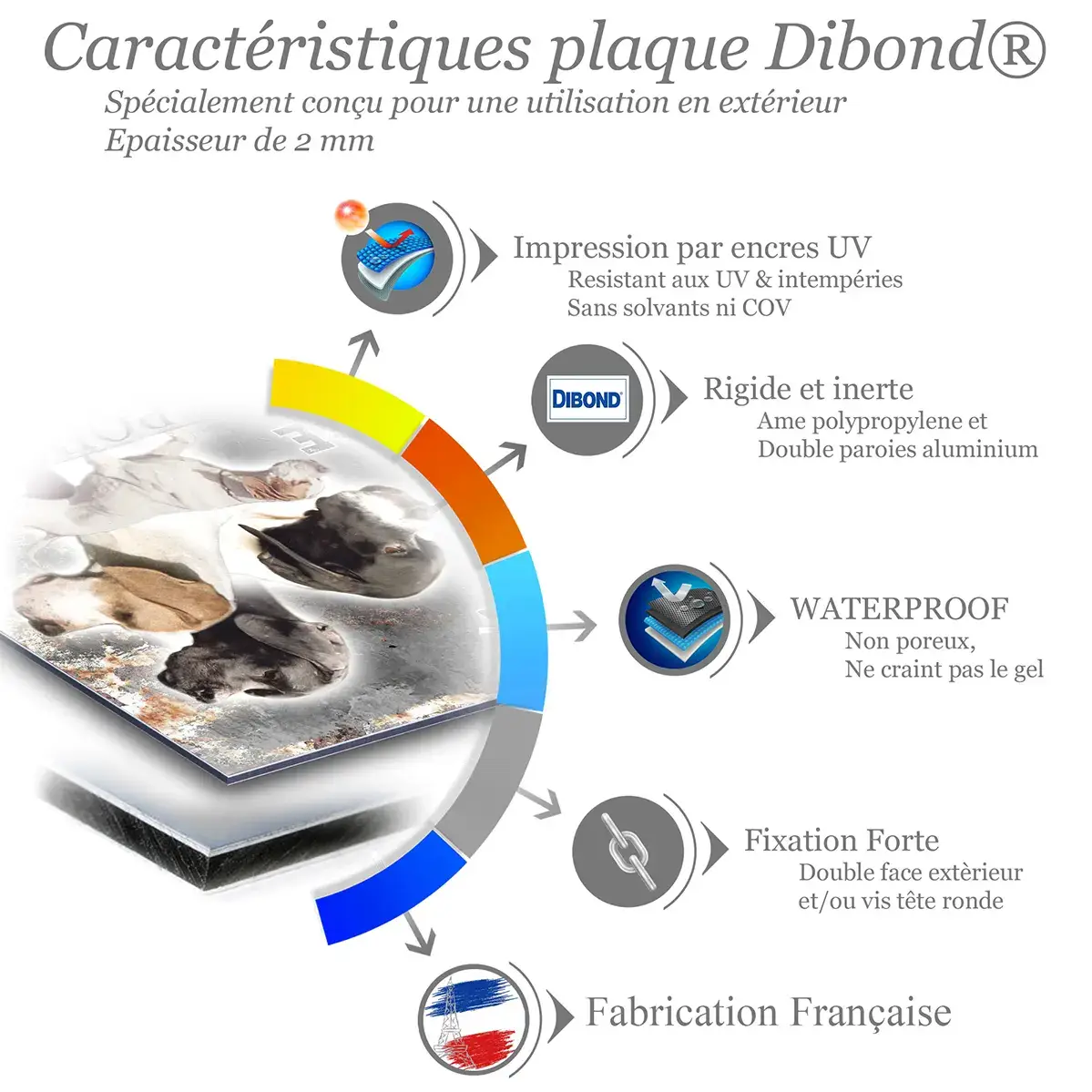 Oui, la plaque est fabriquée en aluminium Dibond de 2 mm et imprimée en UV. Elle ne craint ni la pluie, ni le soleil, ni le gel. Elle peut rester fixée dehors toute l’année sans perdre ses couleurs.