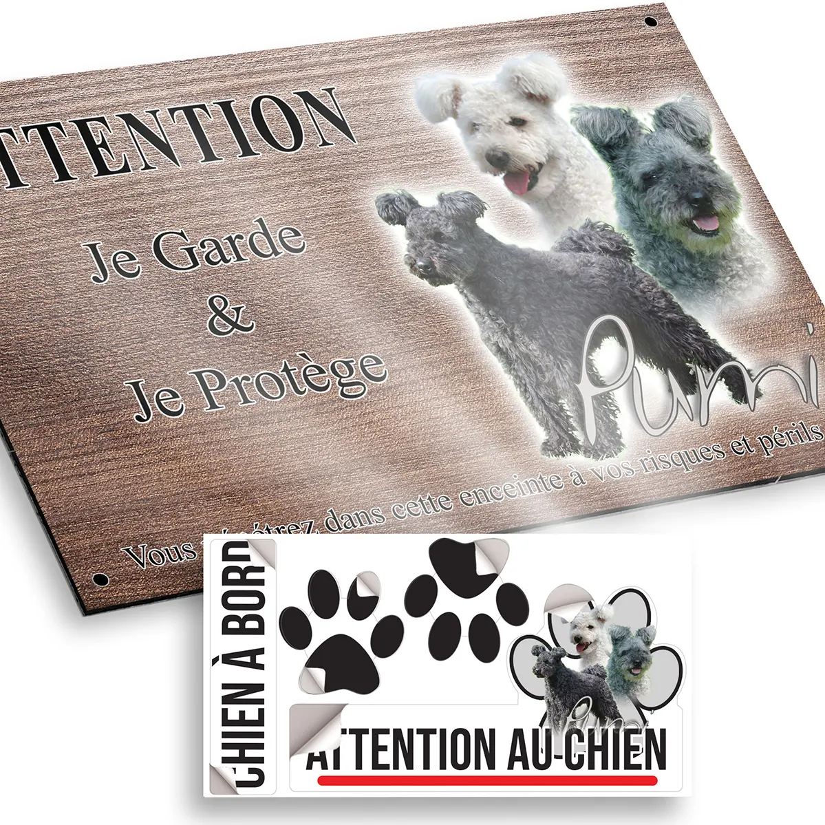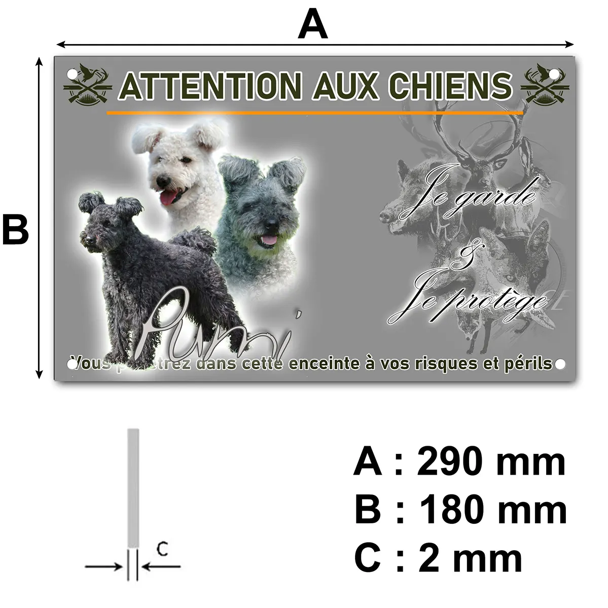- Plaque Attention au chien pumi : signalétique claire et dissuasive