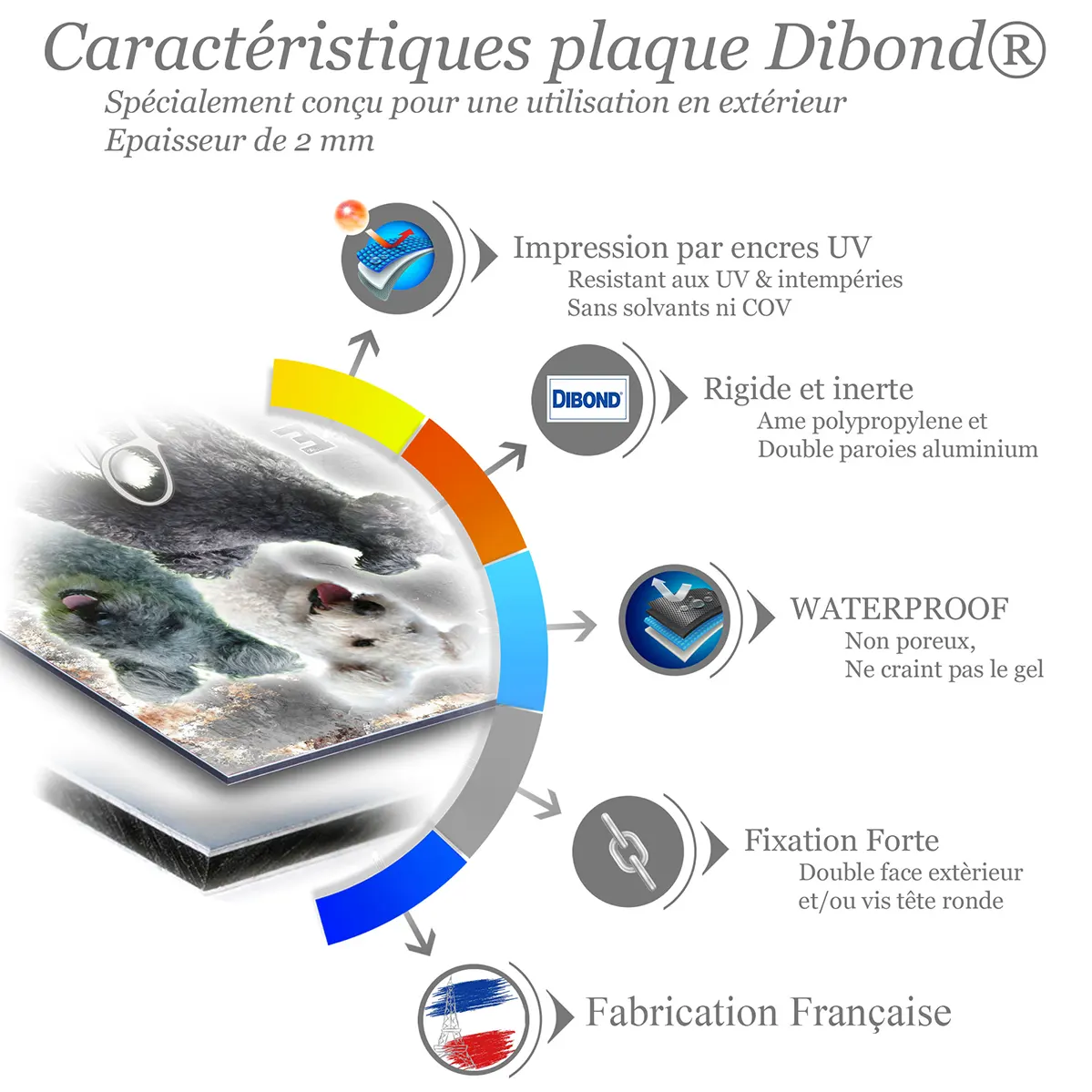 Oui, la plaque est fabriquée en aluminium Dibond de 2 mm et imprimée en UV. Elle ne craint ni la pluie, ni le soleil, ni le gel. Elle peut rester fixée dehors toute l’année sans perdre ses couleurs.
