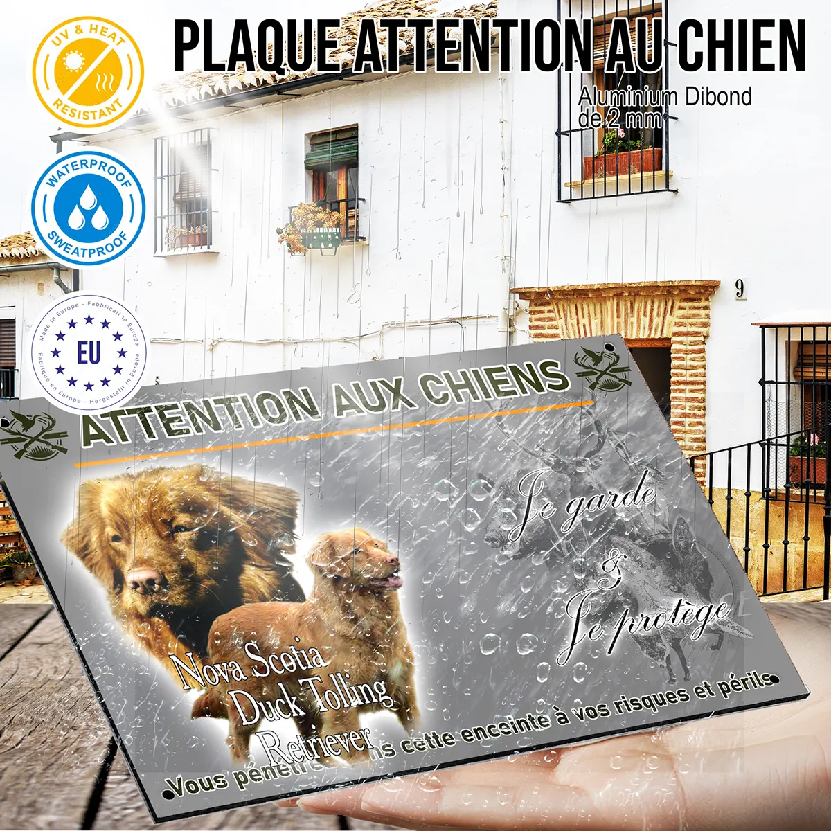 - Plaque Attention au chien retriever de la nouvelle-écosse : signalétique claire et dissuasive
