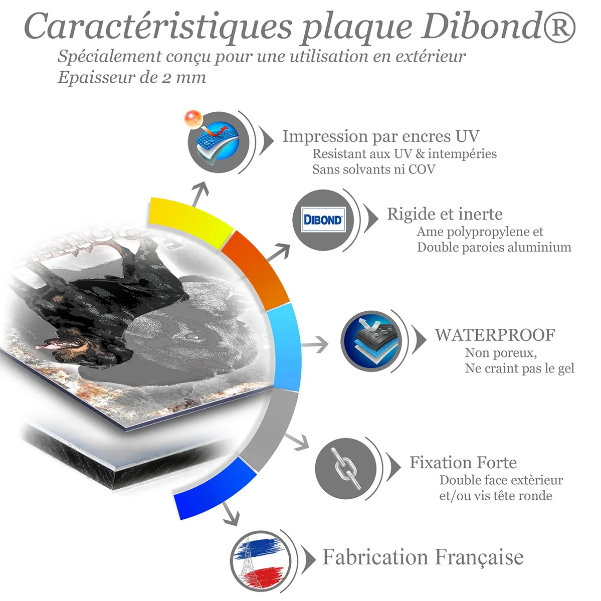 Oui, la plaque est fabriquée en aluminium Dibond de 2 mm et imprimée en UV. Elle ne craint ni la pluie, ni le soleil, ni le gel. Elle peut rester fixée dehors toute l’année sans perdre ses couleurs.