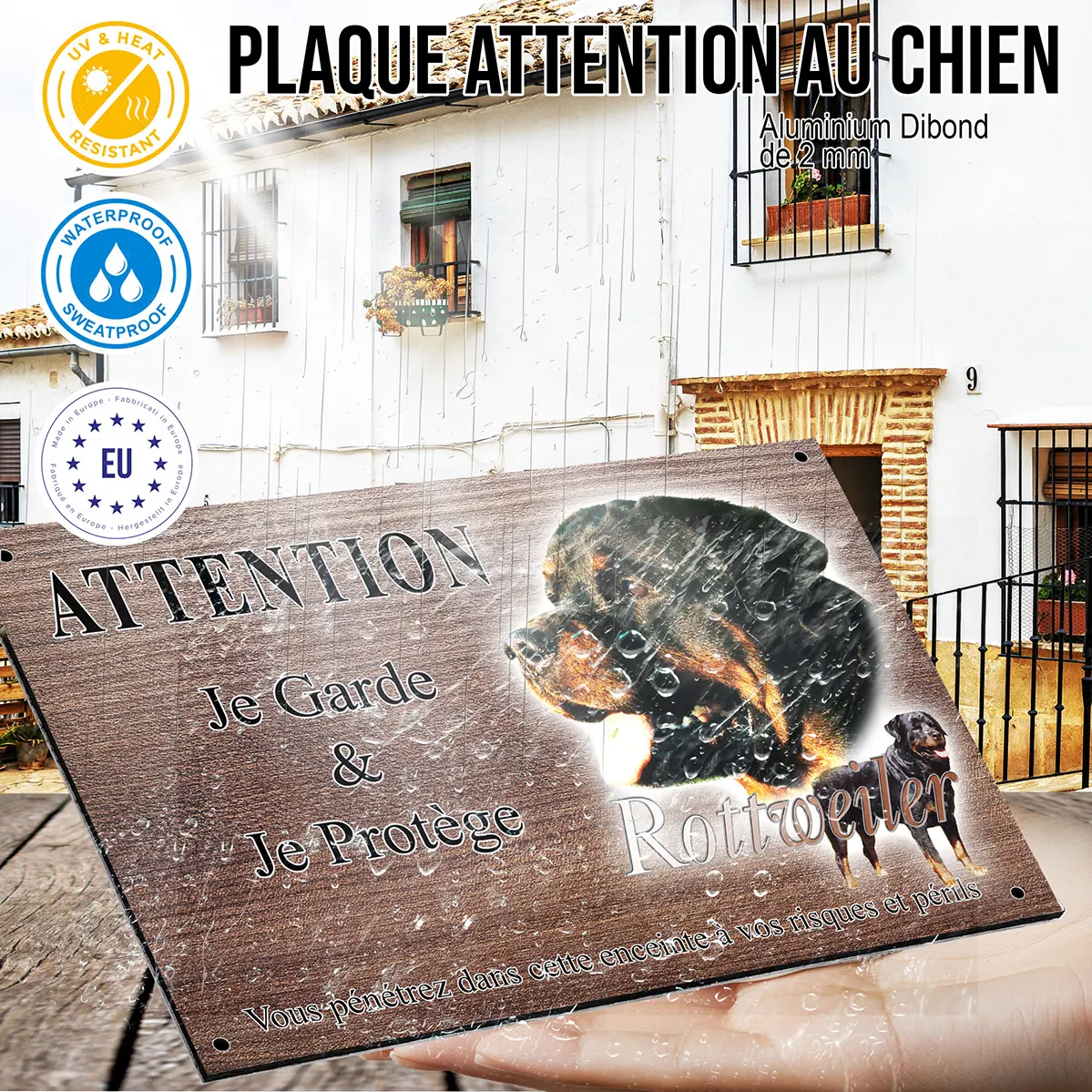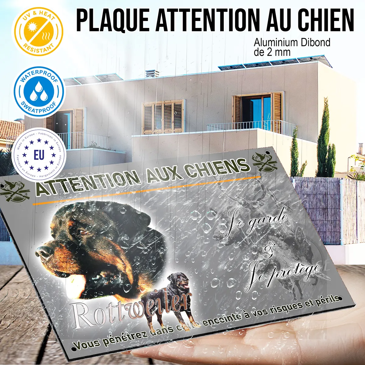 Pour en savoir plus sur notre gamme de plaque attention au chien rottweiler