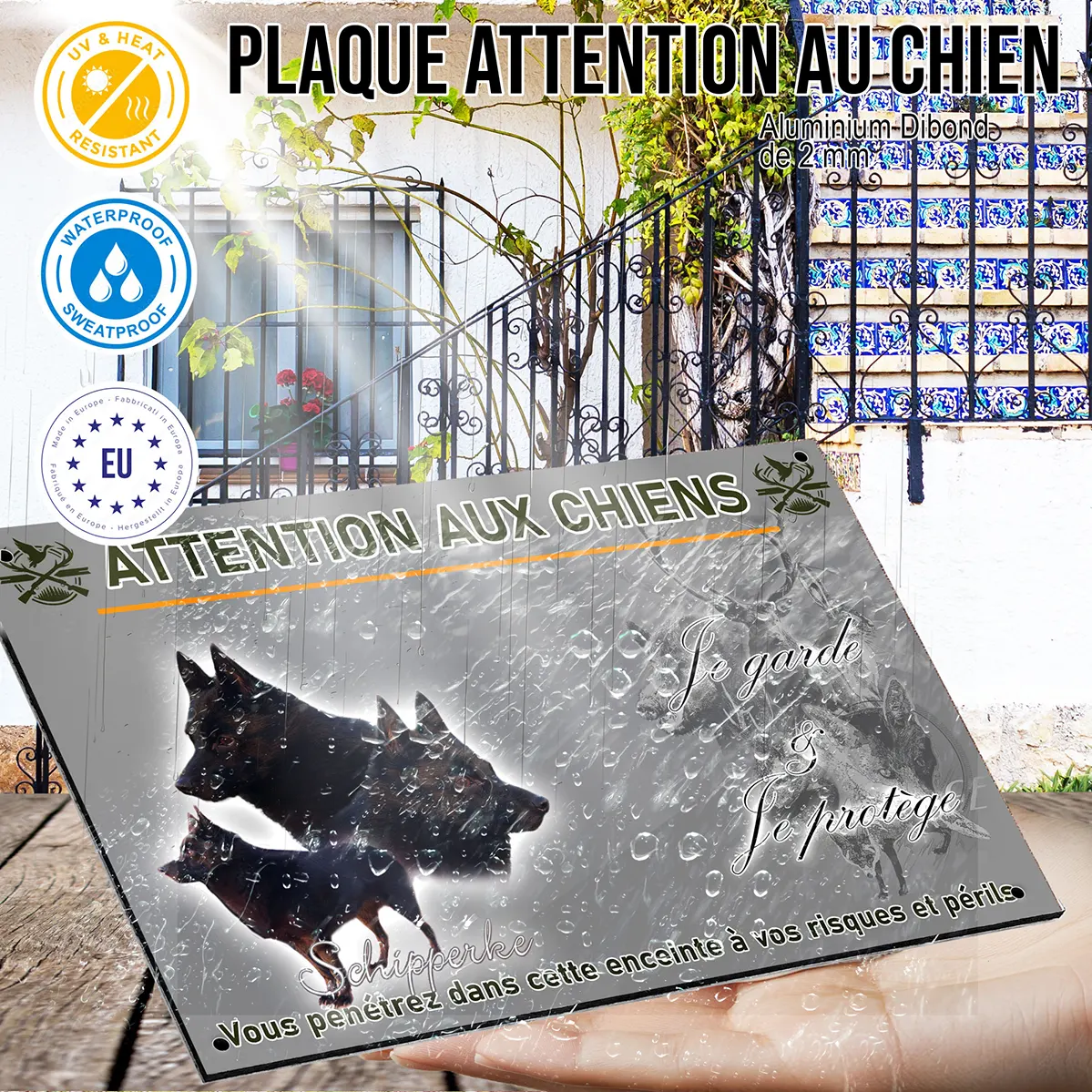 Installer une plaque Attention au chien à l’effigie du schipperke, c’est conjuguer utilité et authenticité. Non seulement elle a une réelle valeur de dissuasion envers les visiteurs indésirables grâce à l’image expressive du schipperke sur plusieurs angles, mais elle reflète aussi le caractère spécifique de votre compagnon à quatre pattes. Une signalétique personnalisée met en avant les qualités naturelles du schipperke : la vigilance, la vivacité et l’attention portée à son territoire.