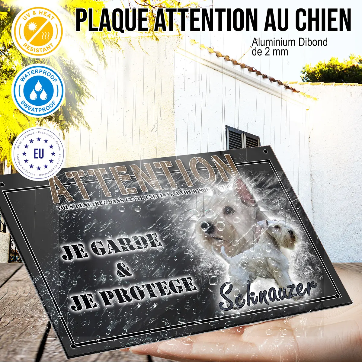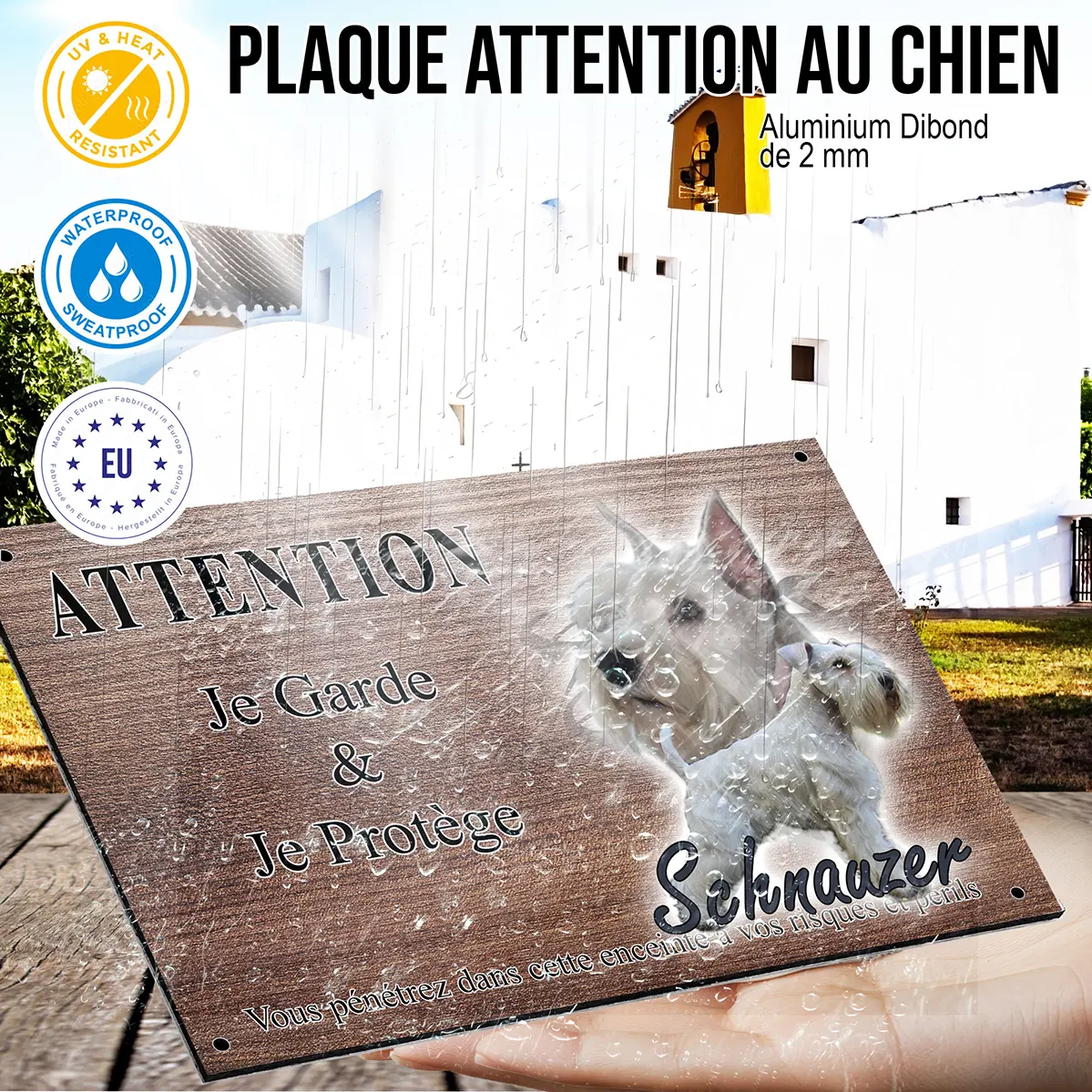 - Plaque Attention au chien schnauzer blanc : signalétique claire et dissuasive