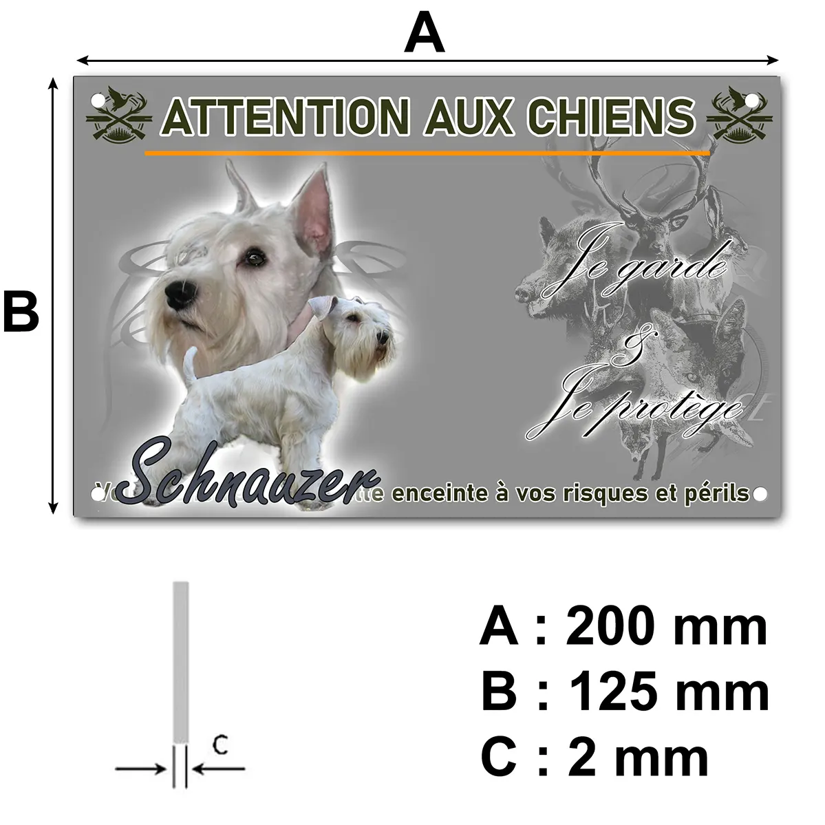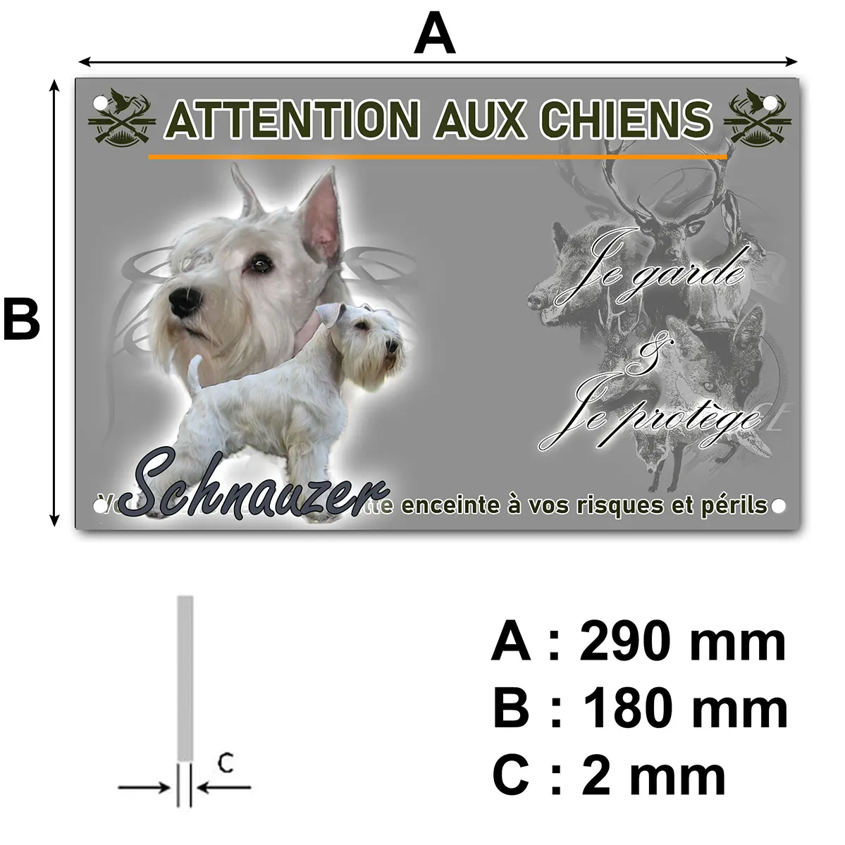 Plaque attention au chien Schnauzer Blanc métal résistant extérieur