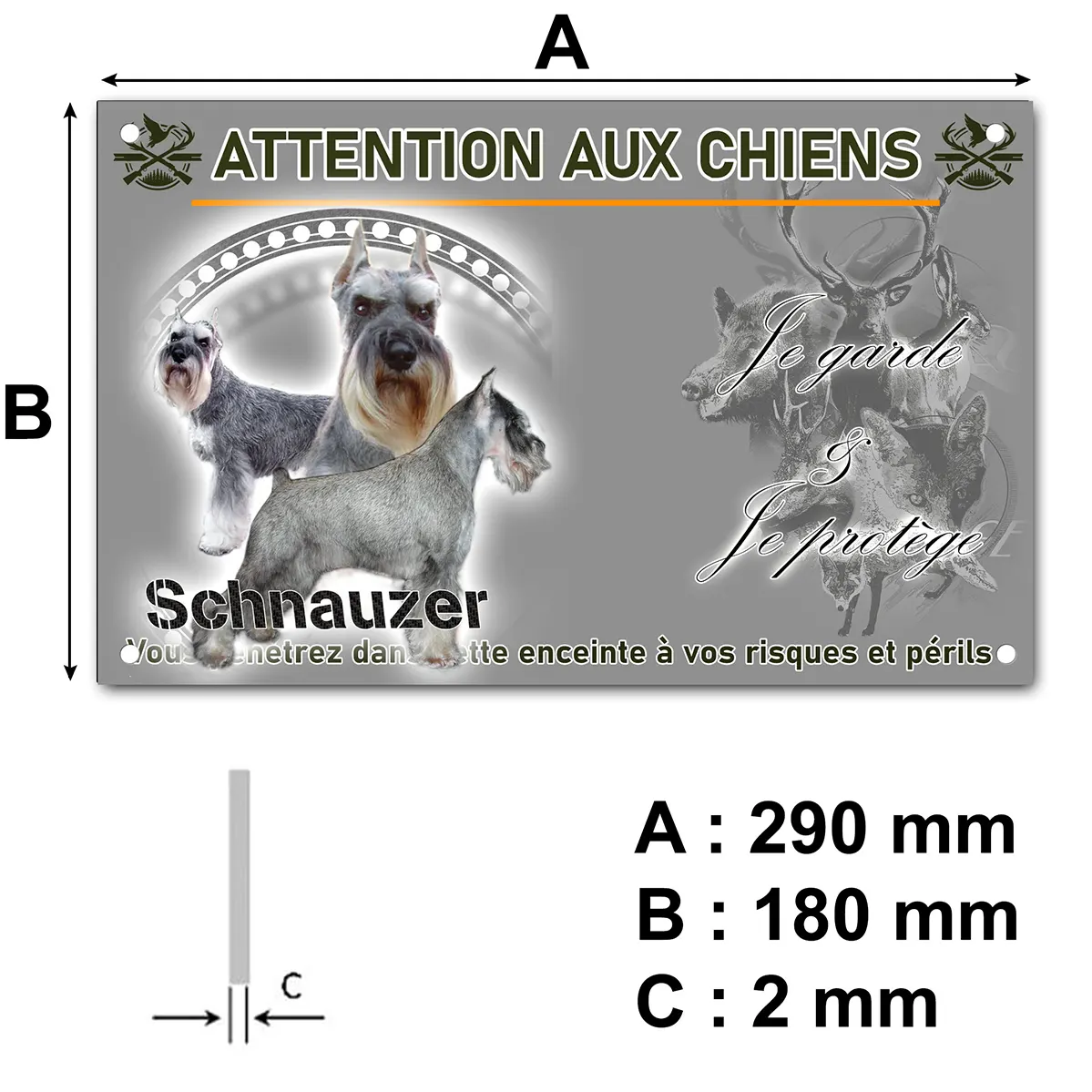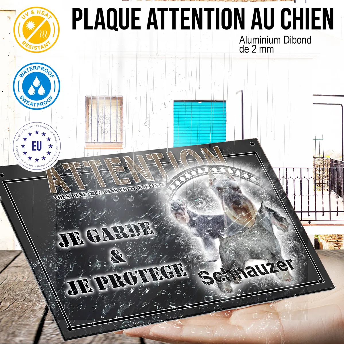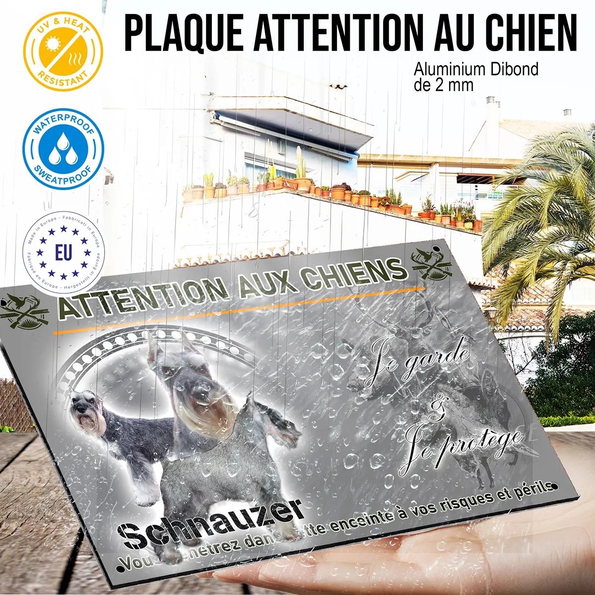 - Plaque Attention au chien schnauzer poivre et sel : signalétique claire et dissuasive