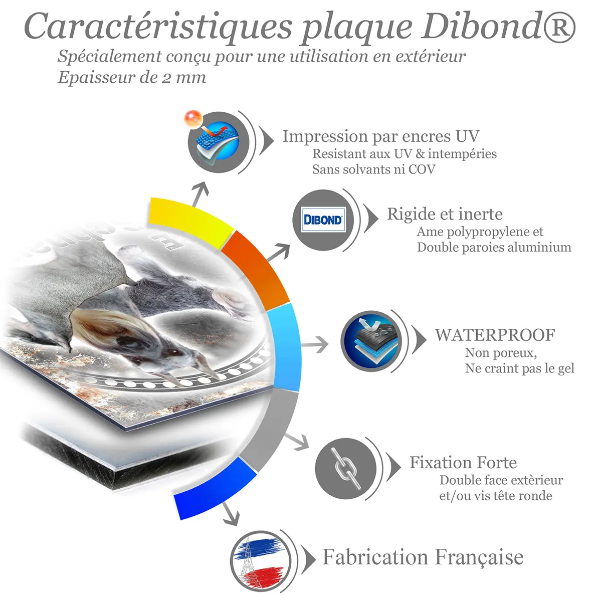 Oui, la plaque est fabriquée en aluminium Dibond de 2 mm et imprimée en UV. Elle ne craint ni la pluie, ni le soleil, ni le gel. Elle peut rester fixée dehors toute l’année sans perdre ses couleurs.