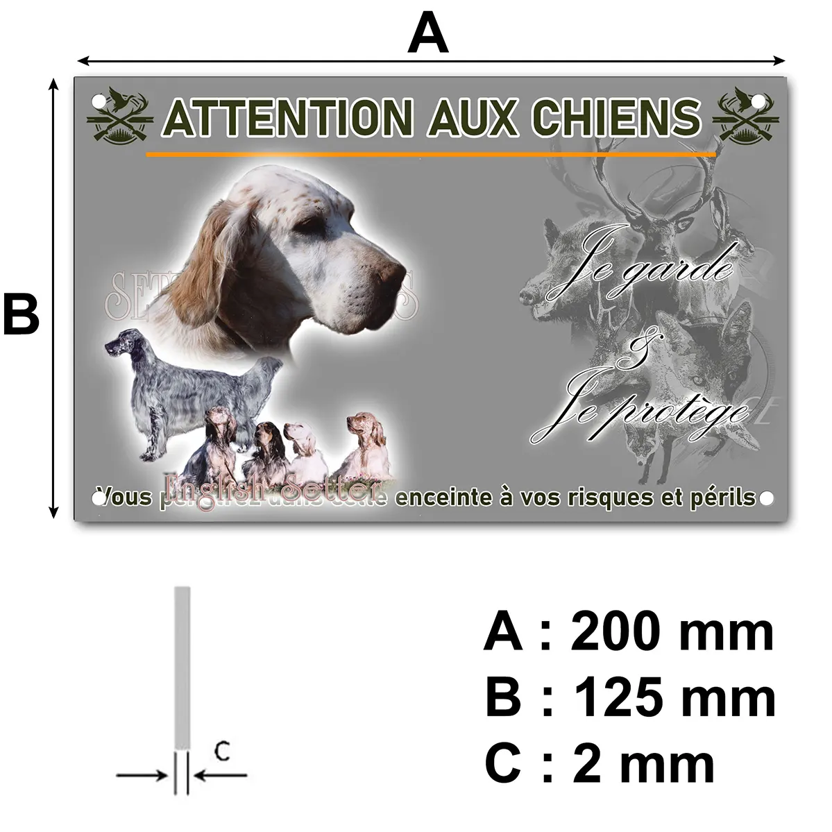 Plaque attention au chien Setter Anglais métal résistant extérieur