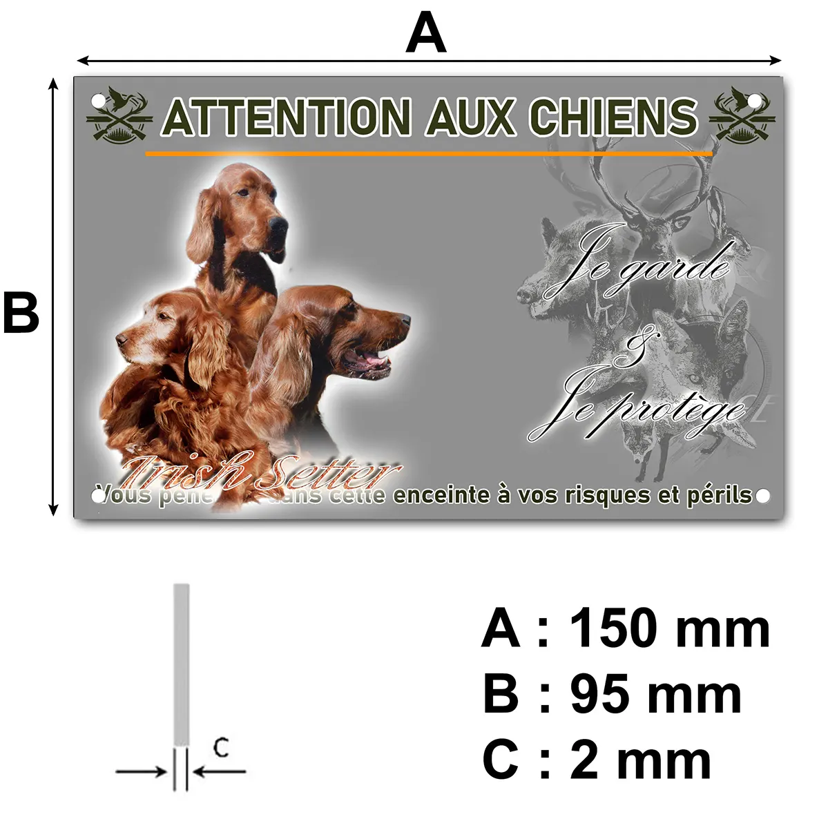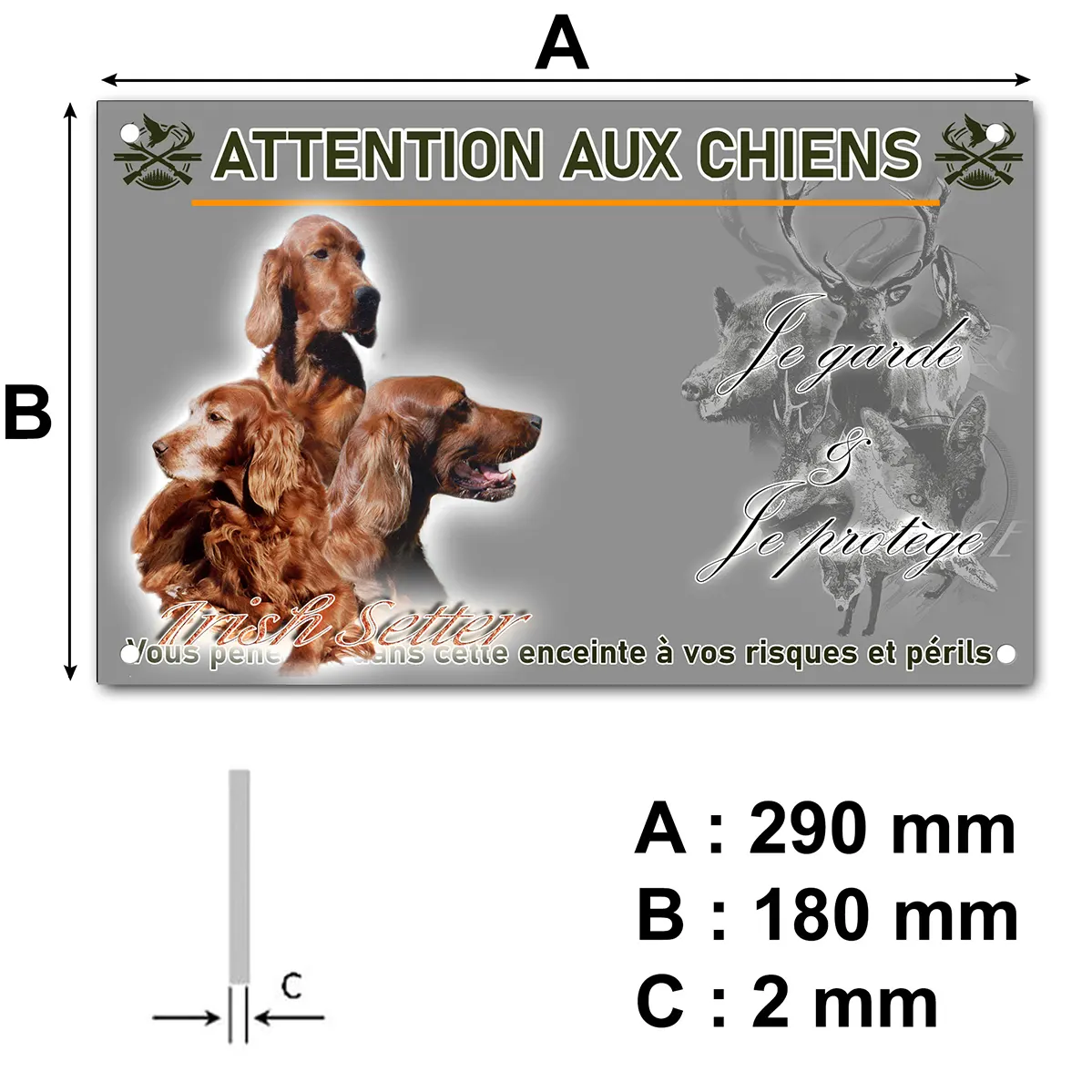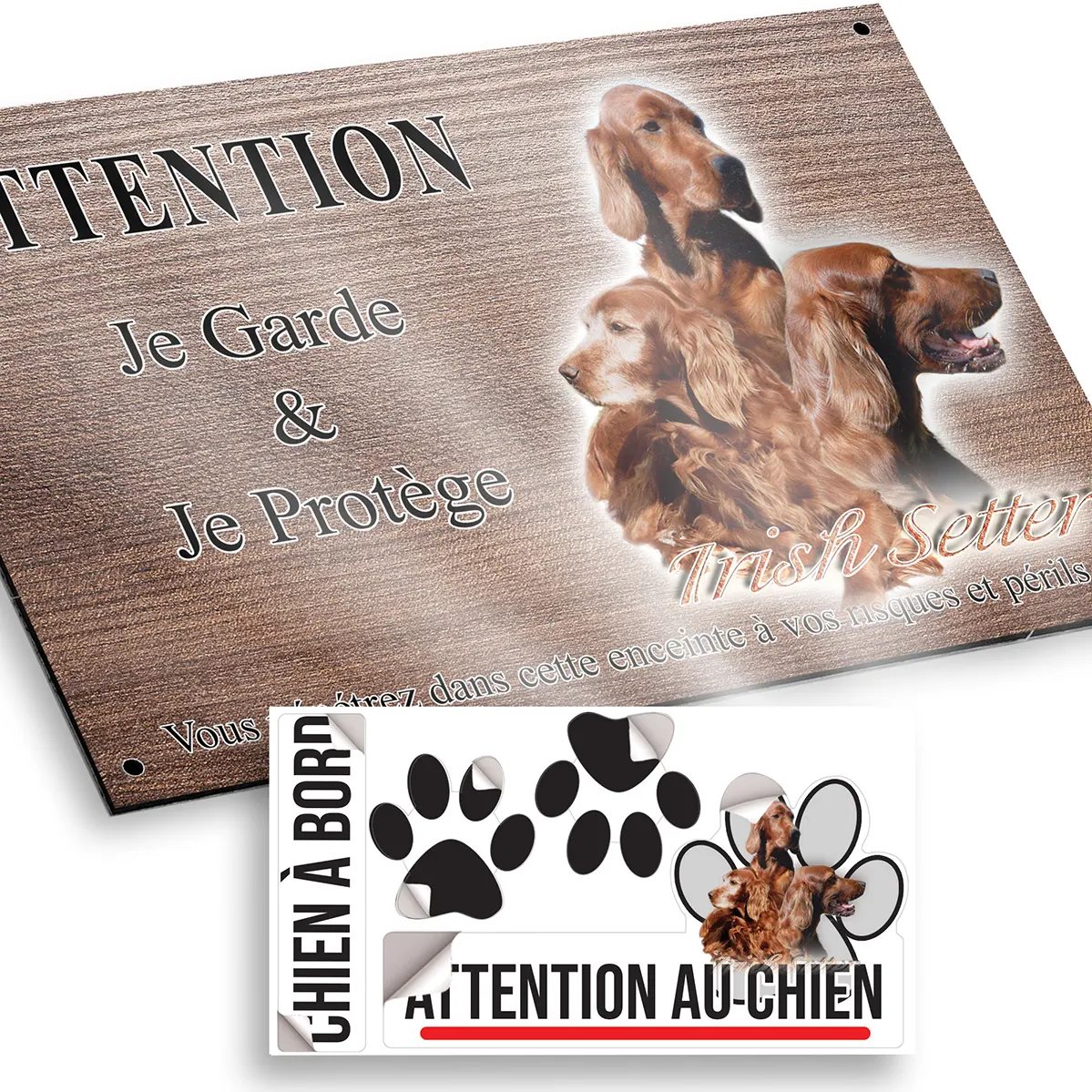 - Plaque Attention au chien setter irlandais : signalétique claire et dissuasive