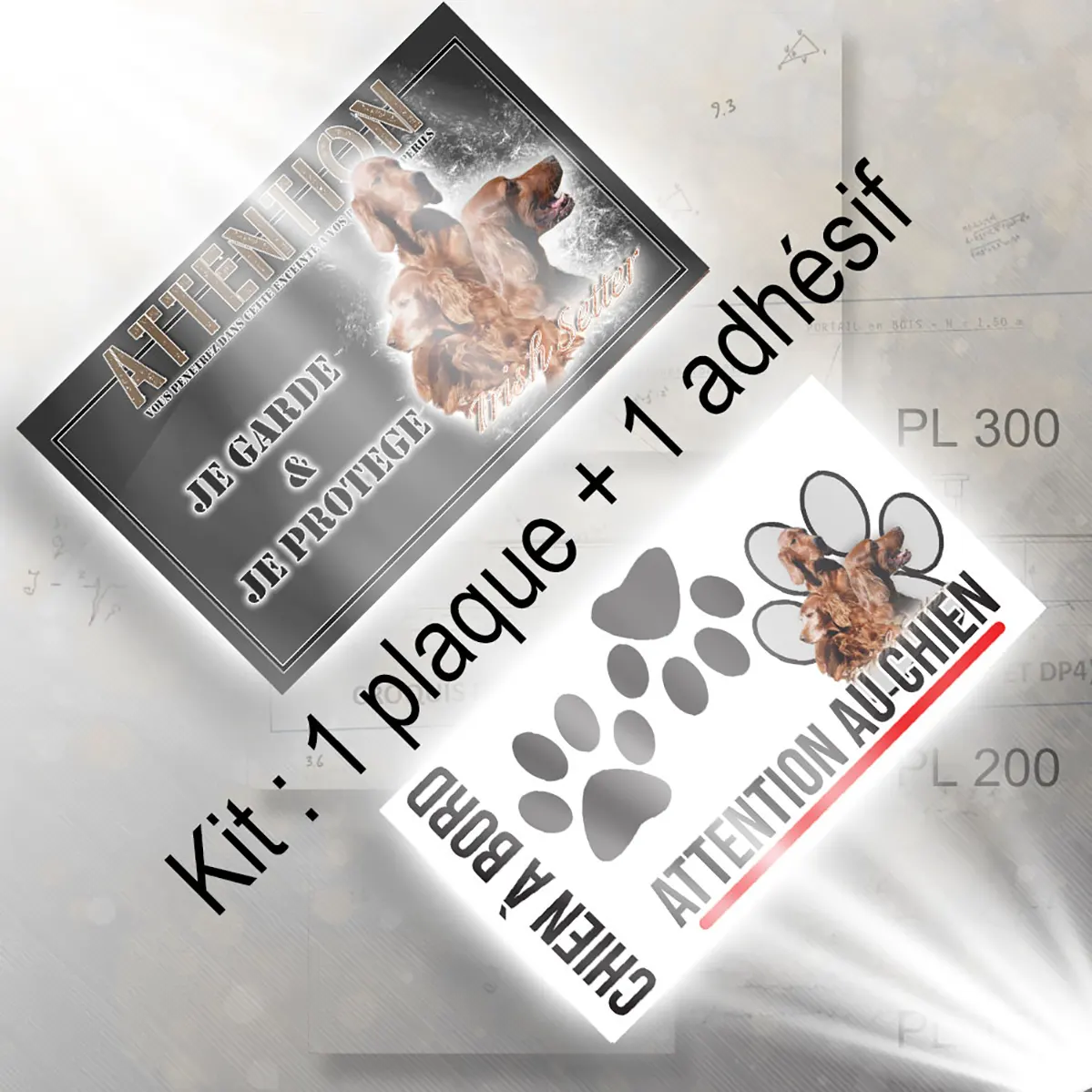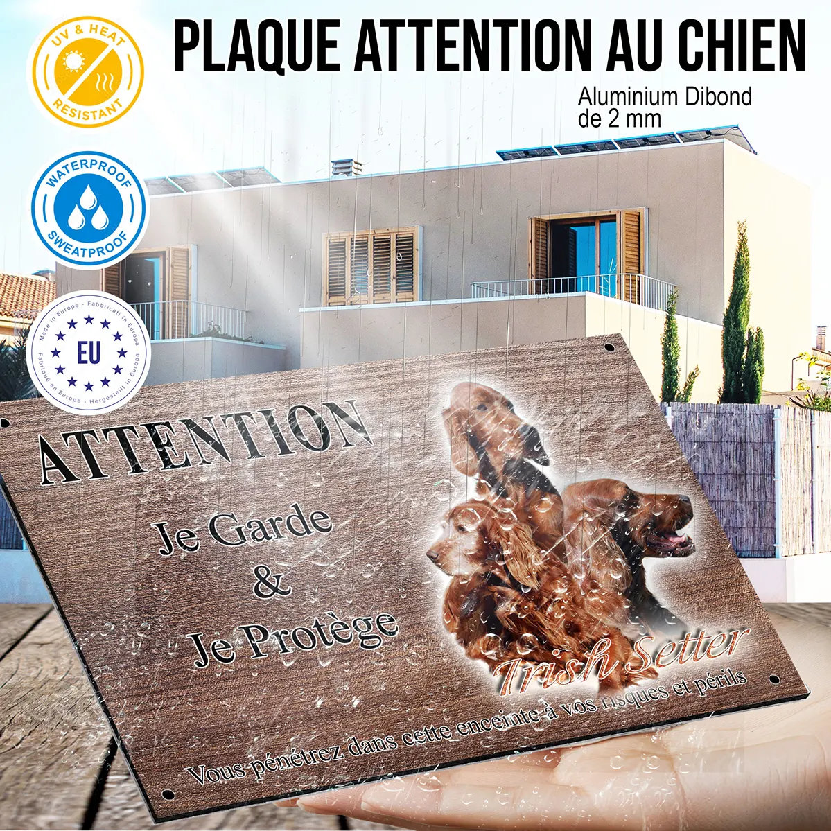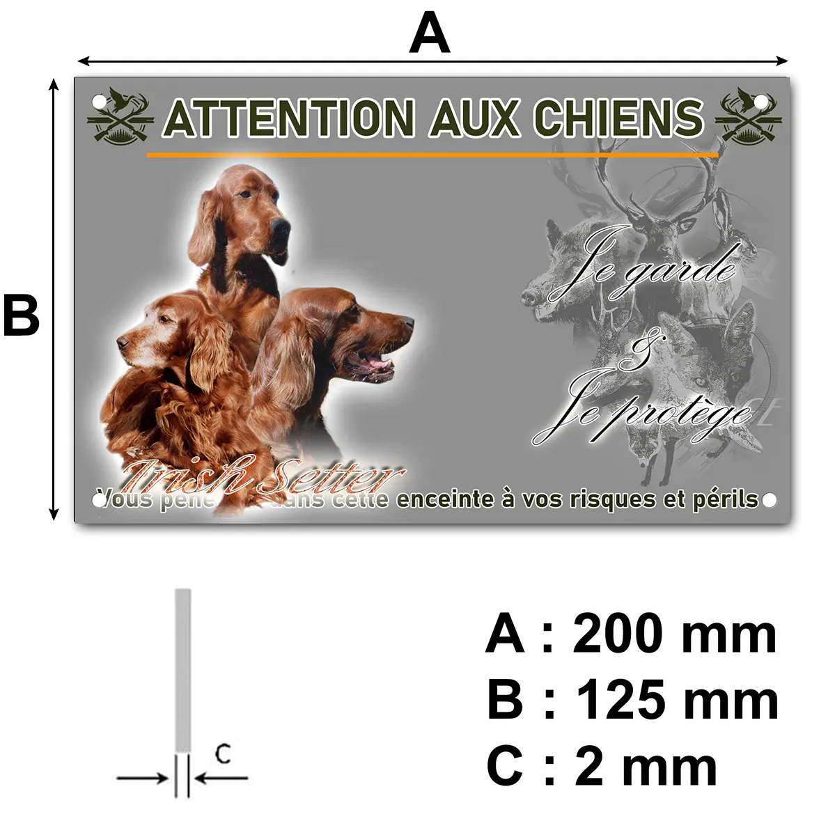 - Plaque Attention au chien setter irlandais : signalétique claire et dissuasive