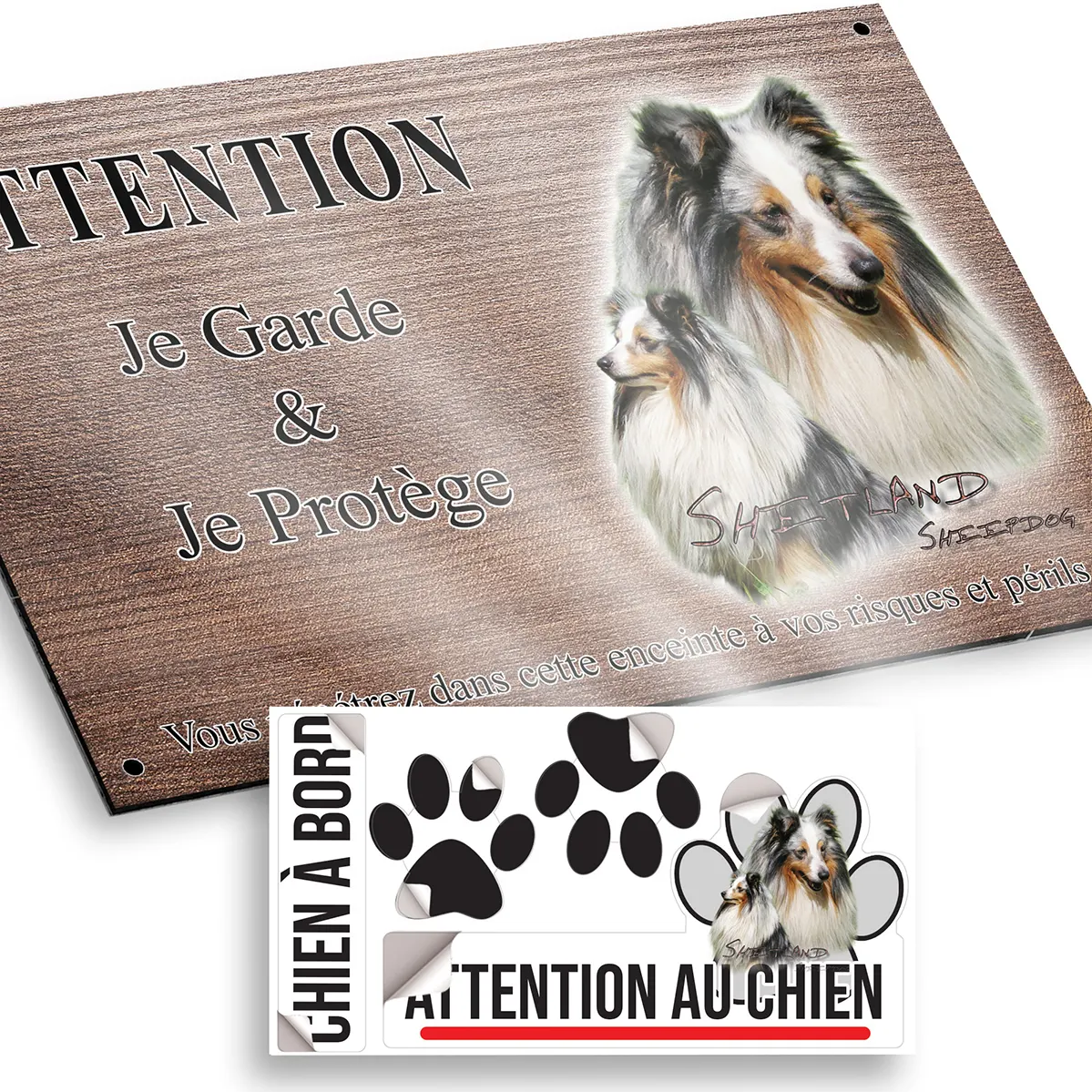 Pour en savoir plus sur notre gamme de plaque attention au chien sheltie bleu