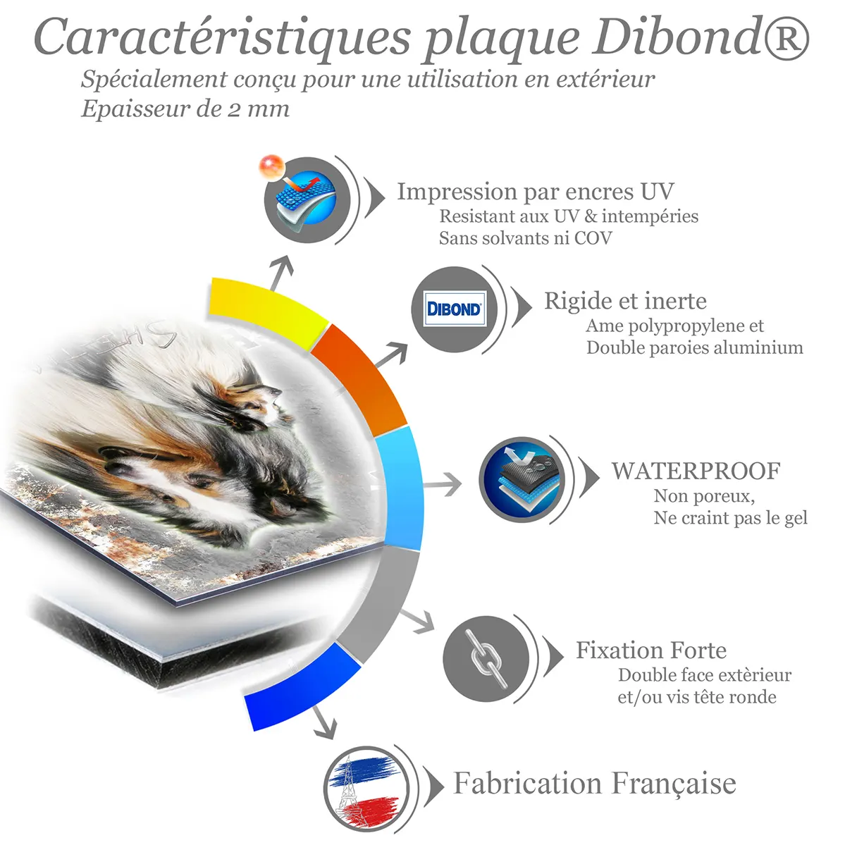 Oui, la plaque est fabriquée en aluminium Dibond de 2 mm et imprimée en UV. Elle ne craint ni la pluie, ni le soleil, ni le gel. Elle peut rester fixée dehors toute l’année sans perdre ses couleurs.