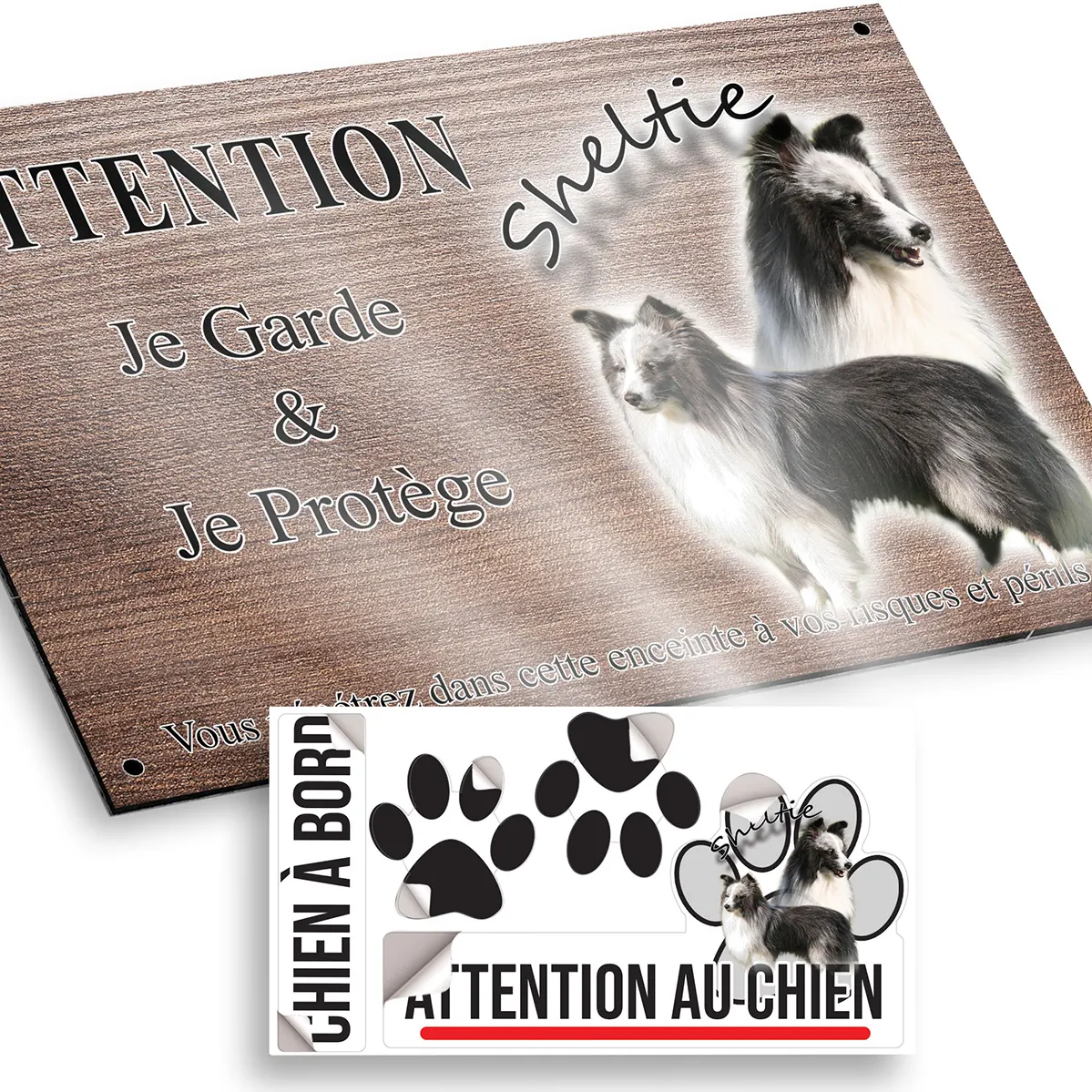 Apposer une plaque Attention au chien illustrée par la silhouette séduisante d’un sheltie noir n’est pas seulement un geste décoratif, c’est aussi une mesure efficace de dissuasion. La représentation réaliste et expressive de deux Shelties renforce le sentiment de vigilance : elle indique clairement aux visiteurs et aux intrus la présence d’un chien attentif, prêt à défendre son environnement. Ce signal associé à la renommée des Shetland Sheepdogs pour leur alerte et leur loyauté contribue à sécuriser votre domicile.