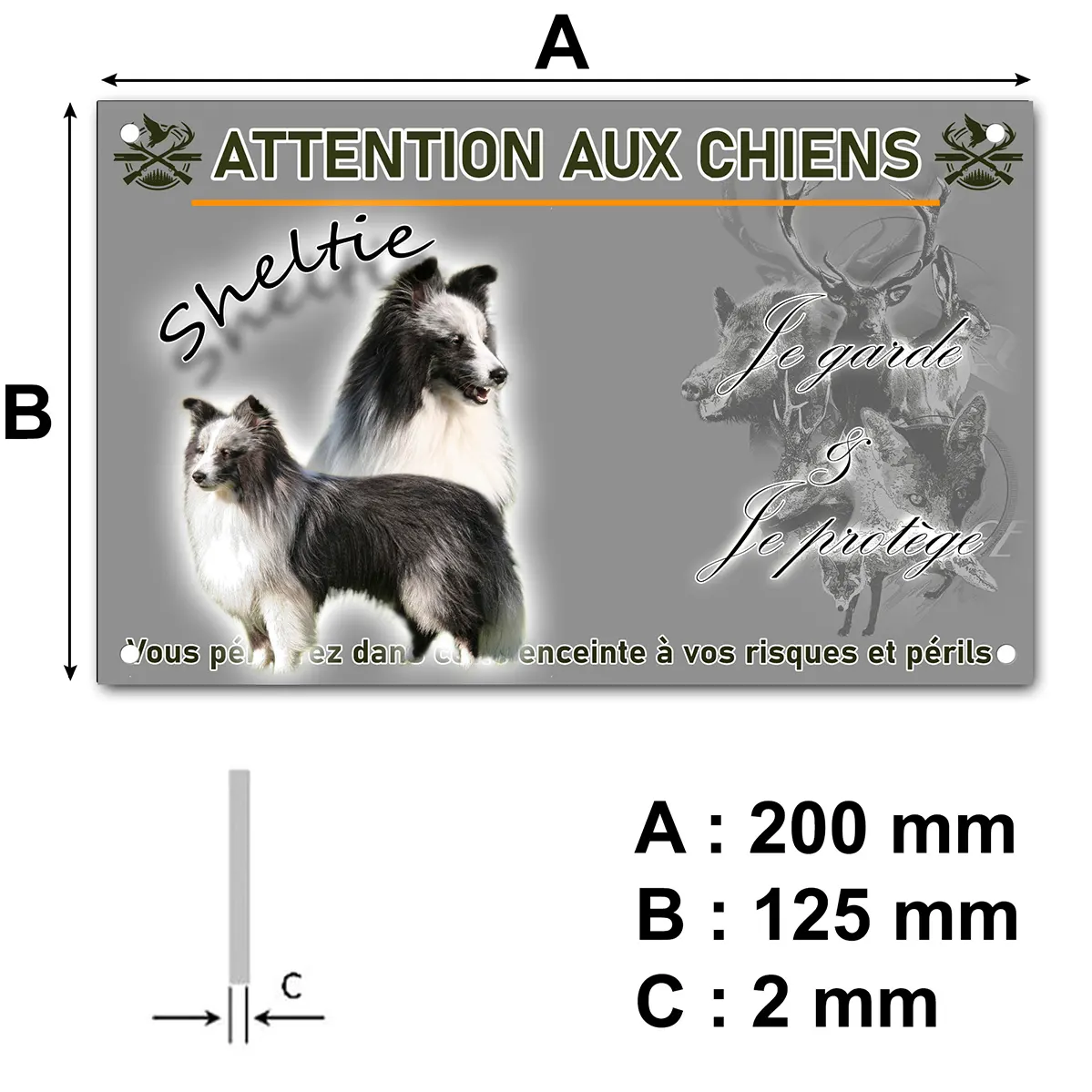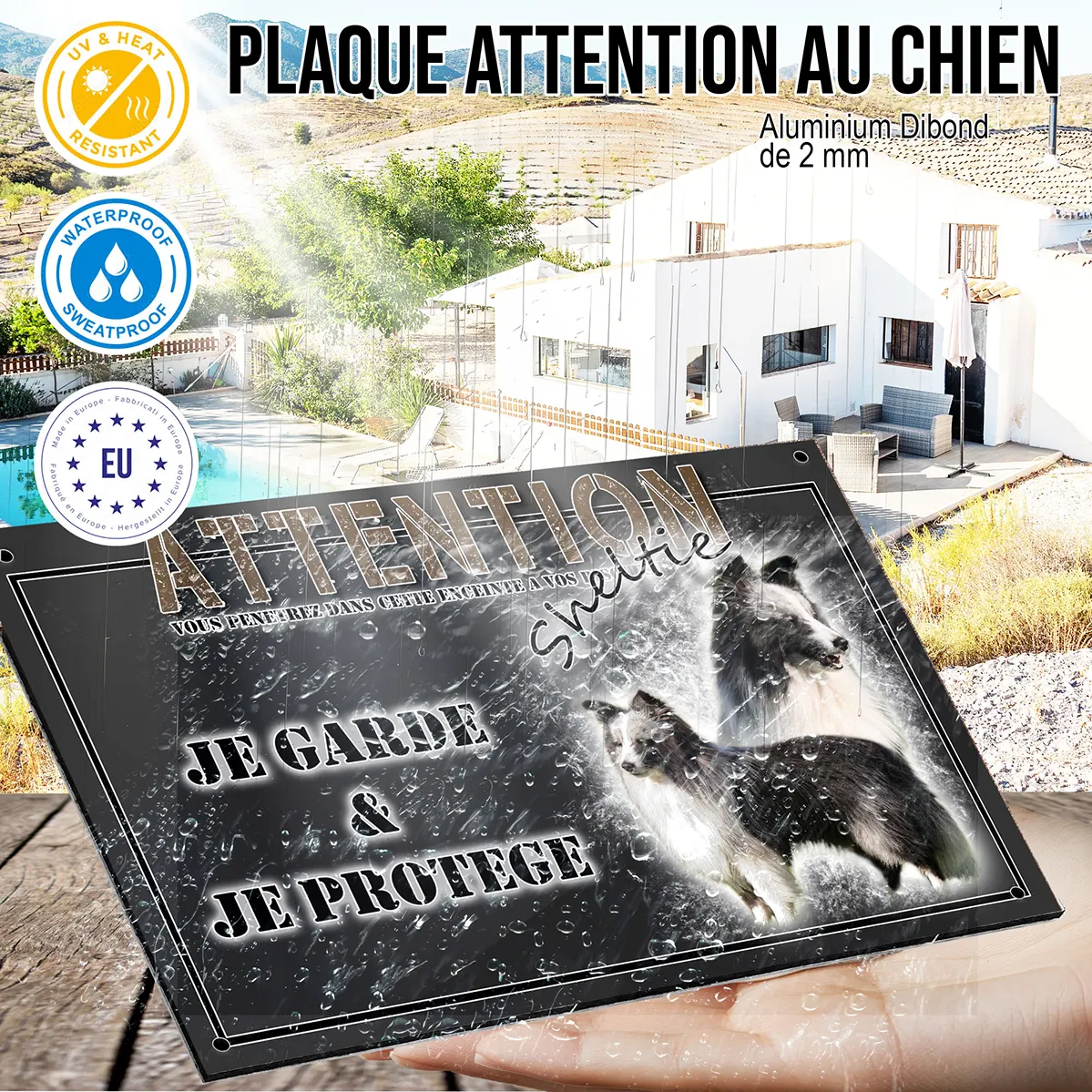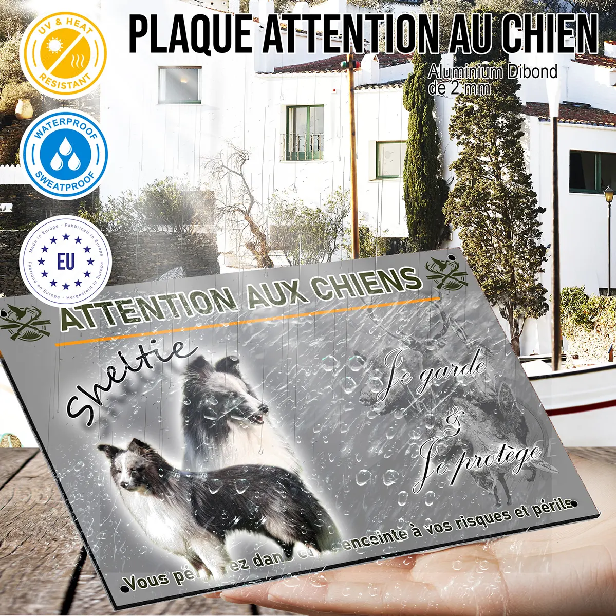 - Plaque Attention au chien sheltie noir : signalétique claire et dissuasive