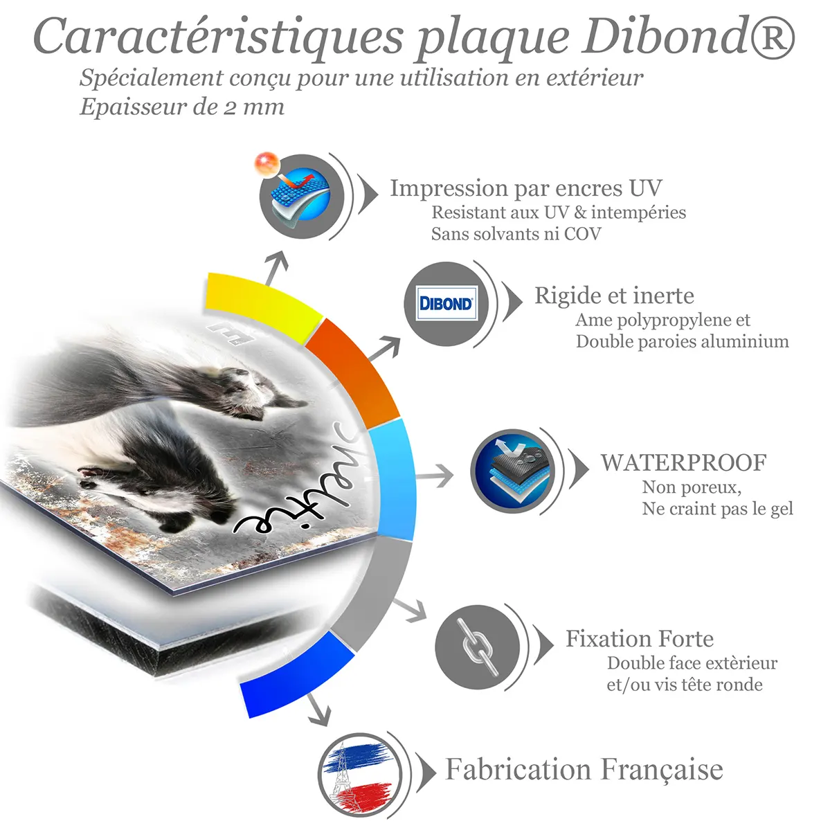 Oui, la plaque est fabriquée en aluminium Dibond de 2 mm et imprimée en UV. Elle ne craint ni la pluie, ni le soleil, ni le gel. Elle peut rester fixée dehors toute l’année sans perdre ses couleurs.