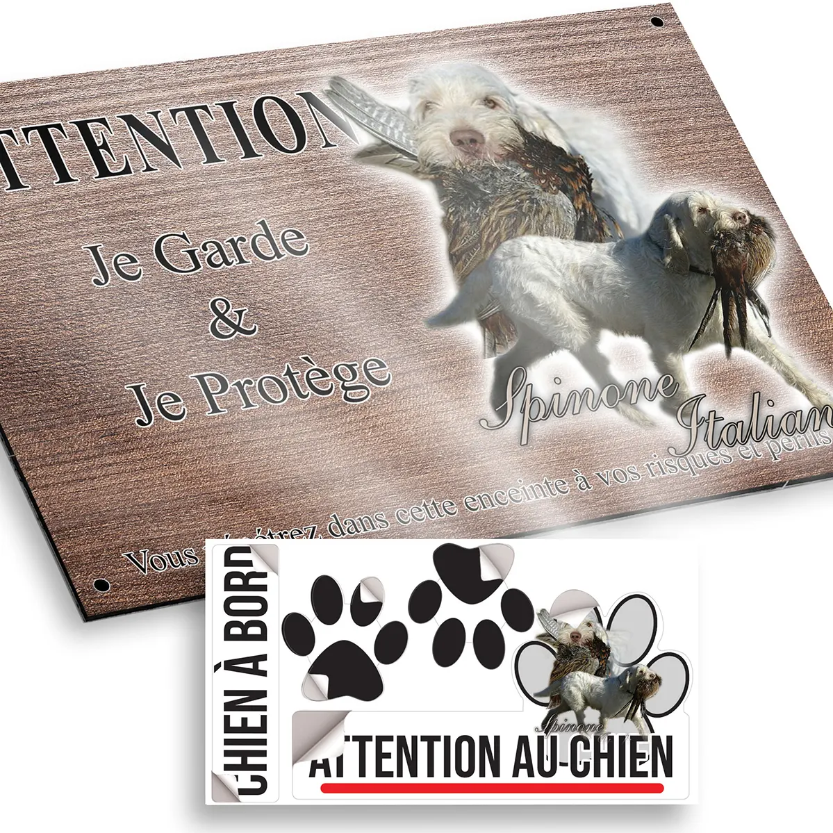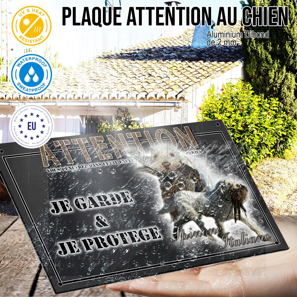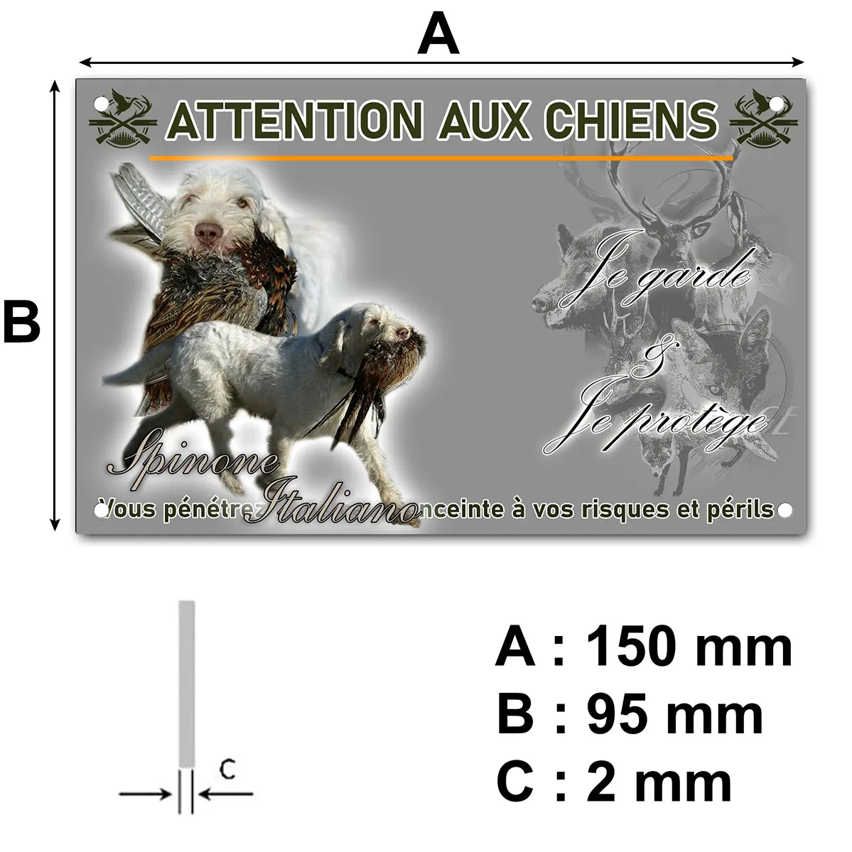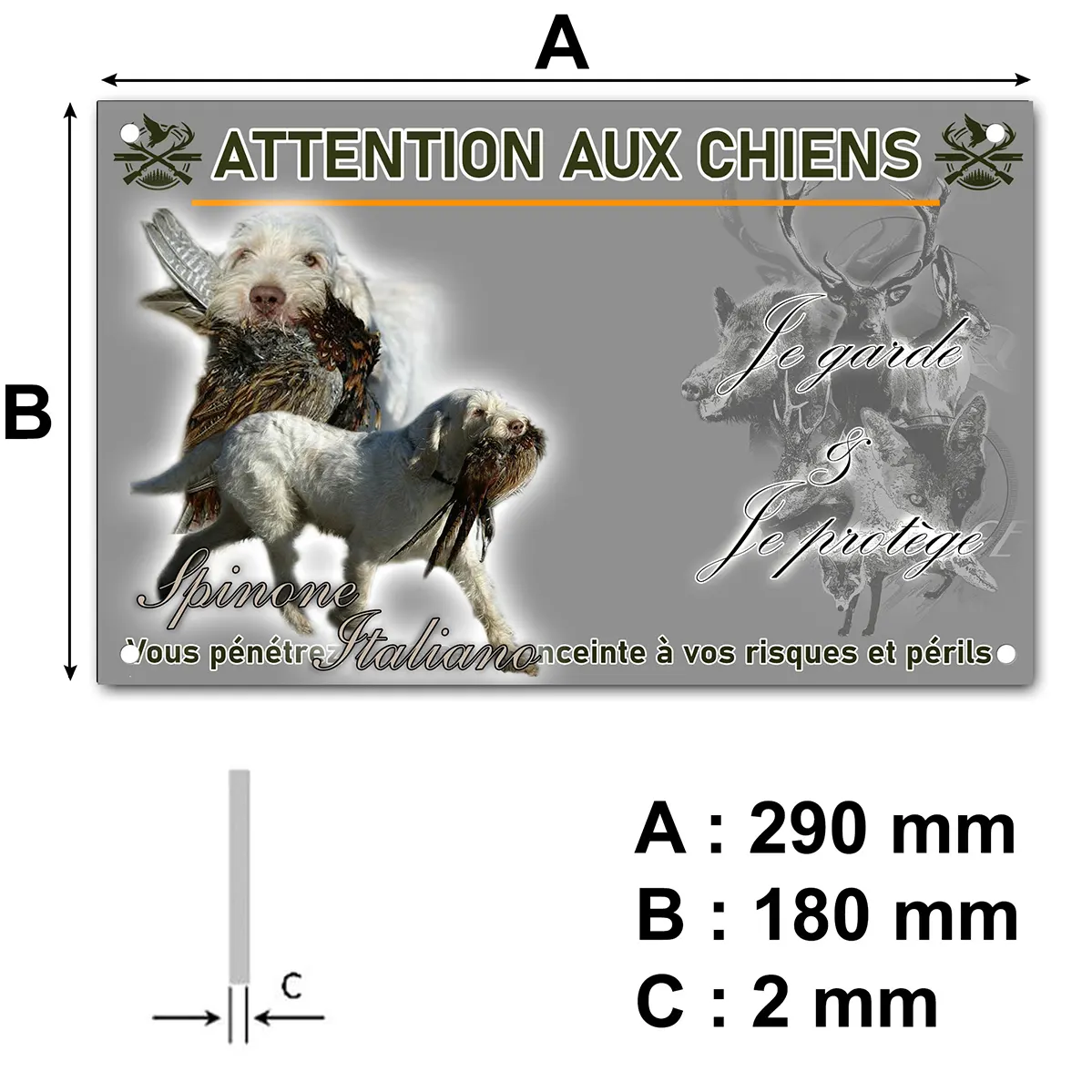 - Plaque Attention au chien spinone : signalétique claire et dissuasive