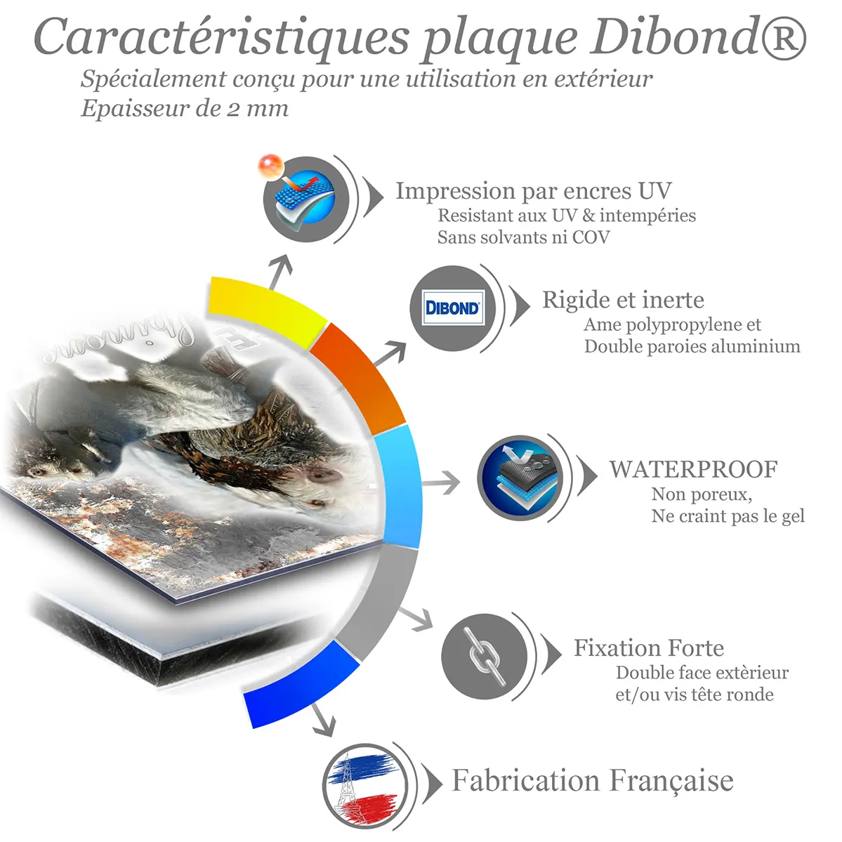 Oui, la plaque est fabriquée en aluminium Dibond de 2 mm et imprimée en UV. Elle ne craint ni la pluie, ni le soleil, ni le gel. Elle peut rester fixée dehors toute l’année sans perdre ses couleurs.