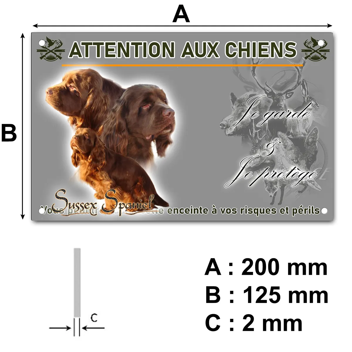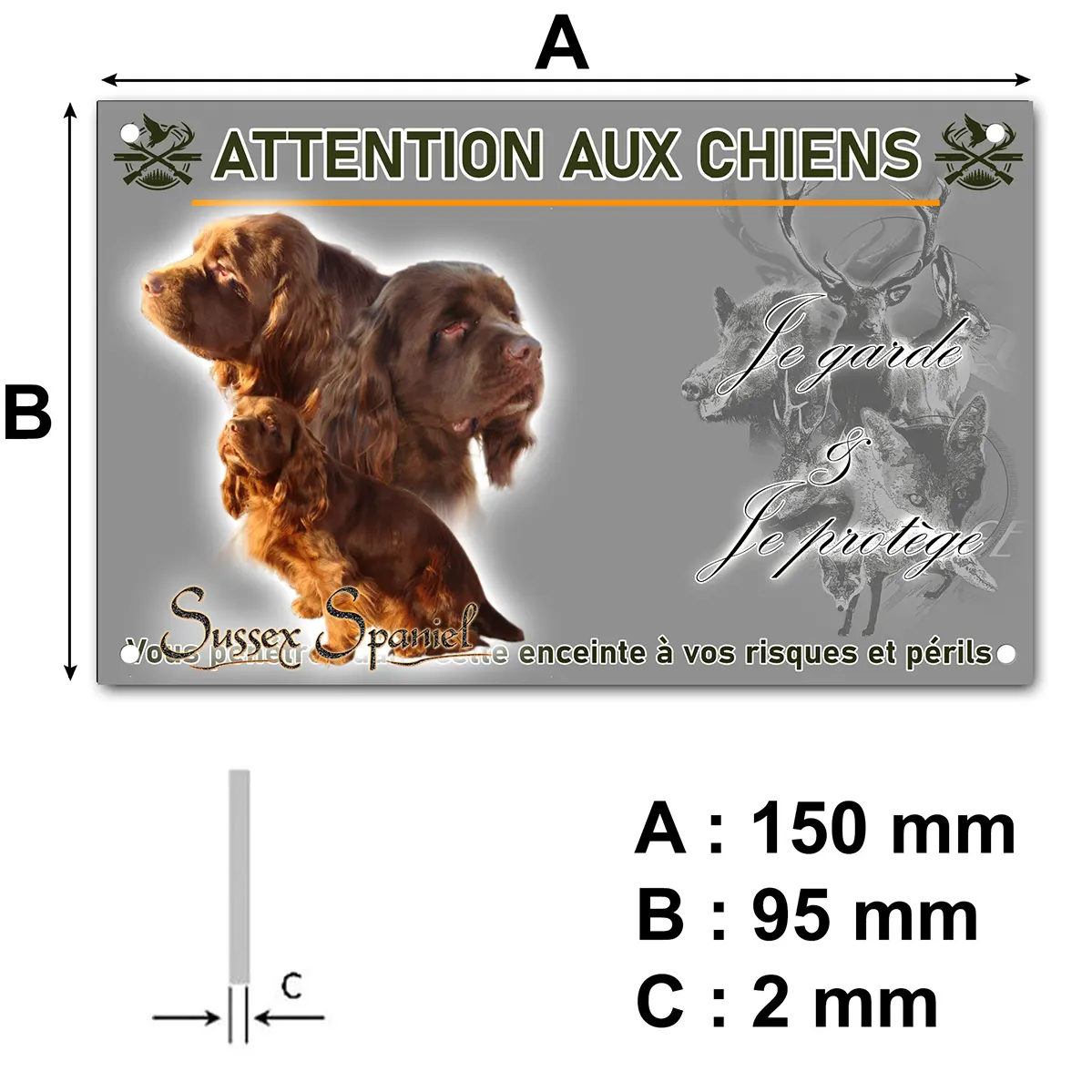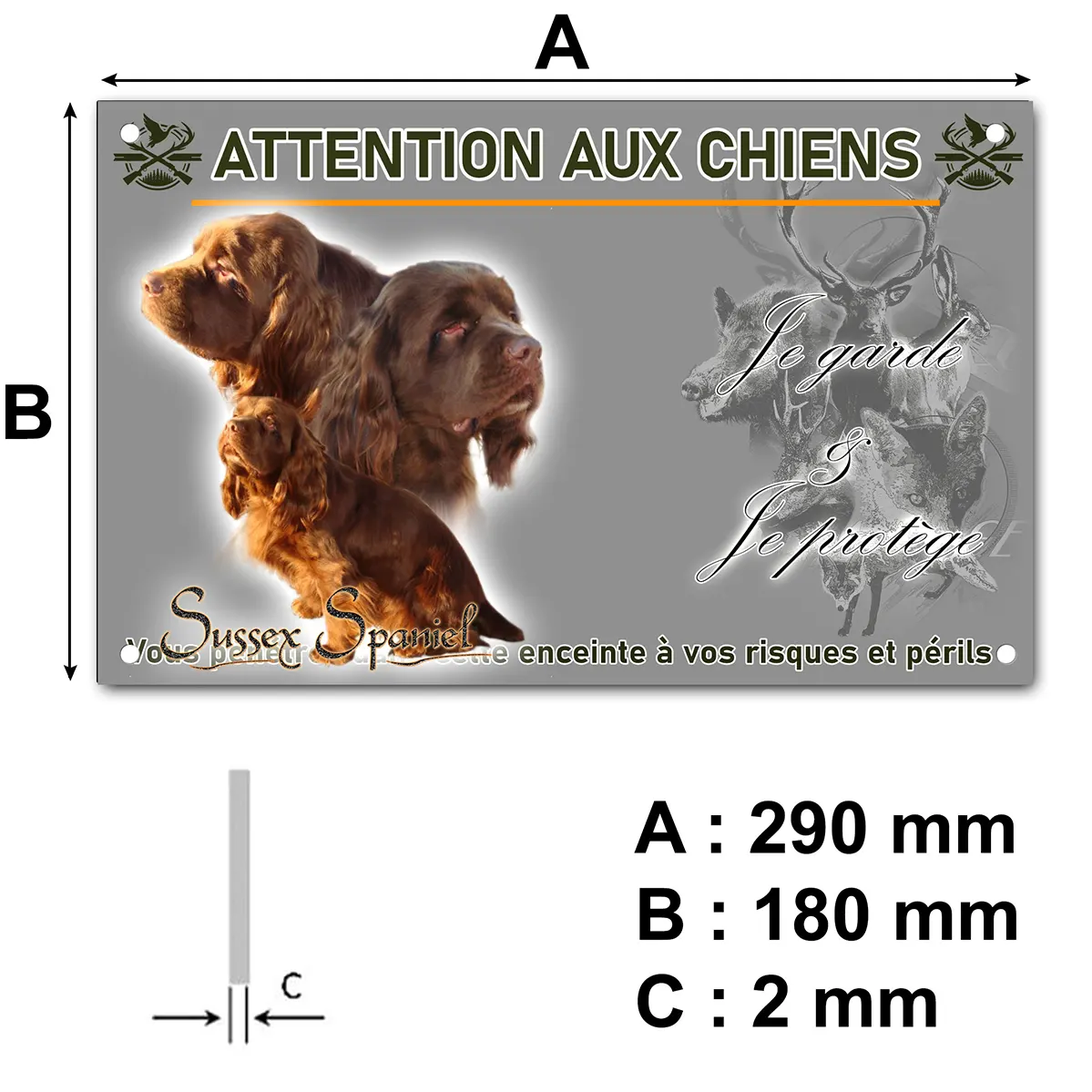 Plaque attention au chien Sussex Spaniel métal résistant extérieur