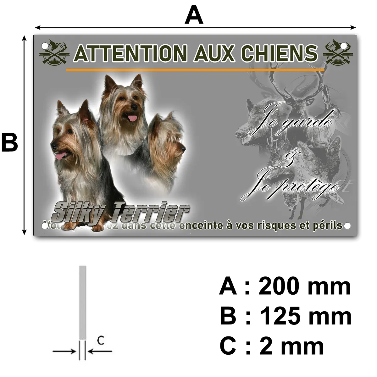 Avec son design soigné, cette plaque Attention au chien terrier australien devient un véritable objet décoratif extérieur, valorisant votre entrée ou votre portail. Elle transmet un message clair tout en rappelant le rôle de chien de garde du Silky Terrier, parfait pour conjuguer sûreté, charme canin et signalétique personnalisée.
