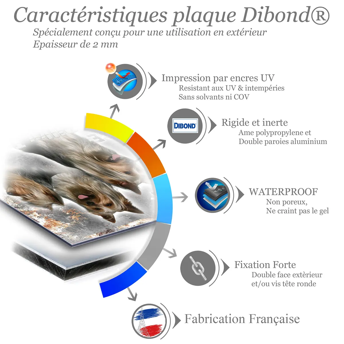 Oui, la plaque est fabriquée en aluminium Dibond de 2 mm et imprimée en UV. Elle ne craint ni la pluie, ni le soleil, ni le gel. Elle peut rester fixée dehors toute l’année sans perdre ses couleurs.