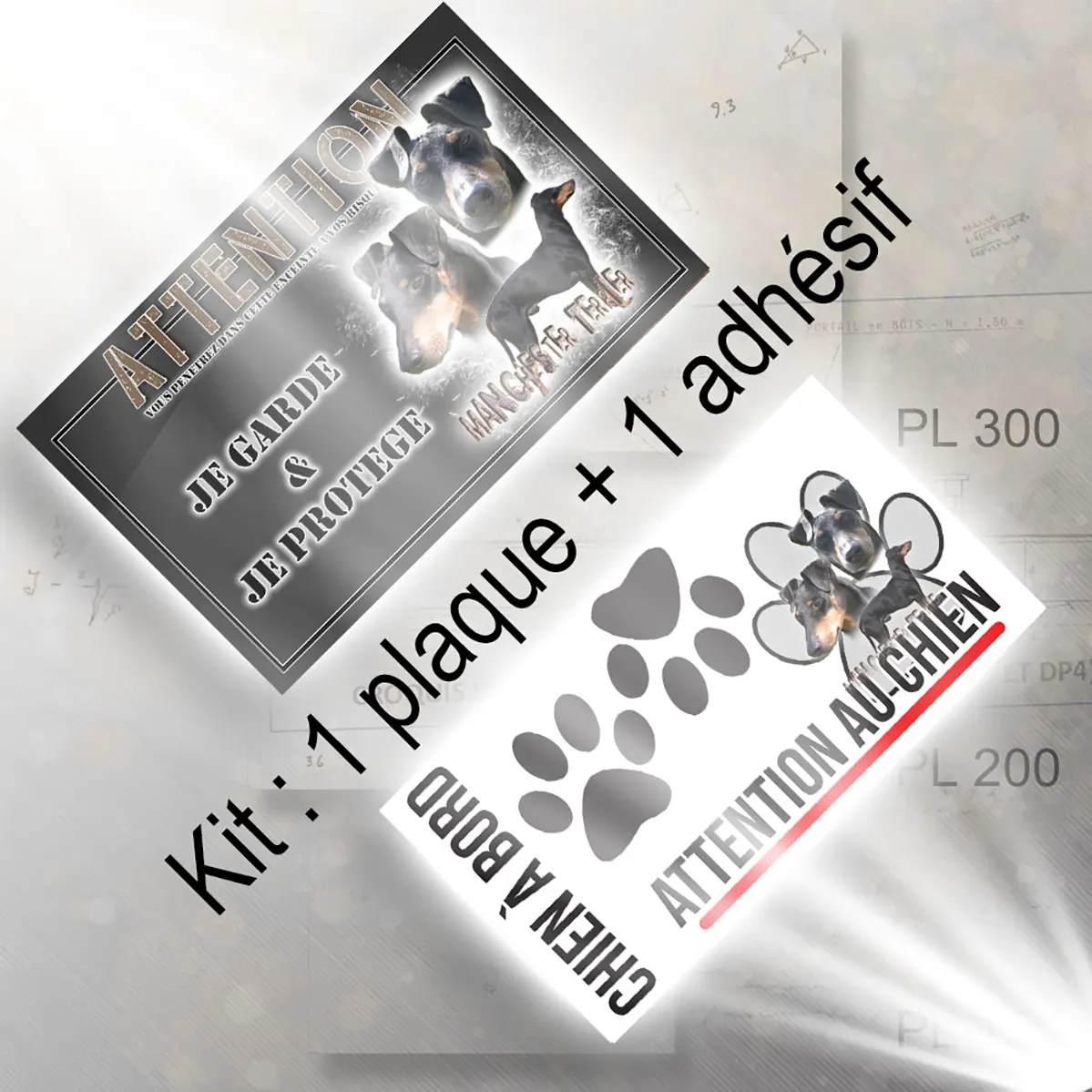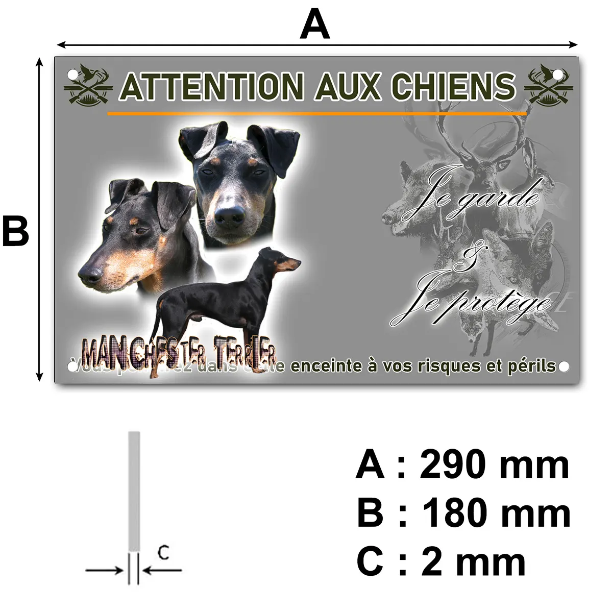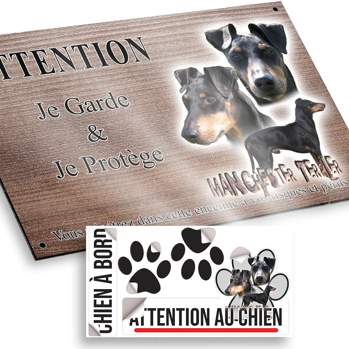 - Plaque Attention au chien terrier de manchester : signalétique claire et dissuasive
