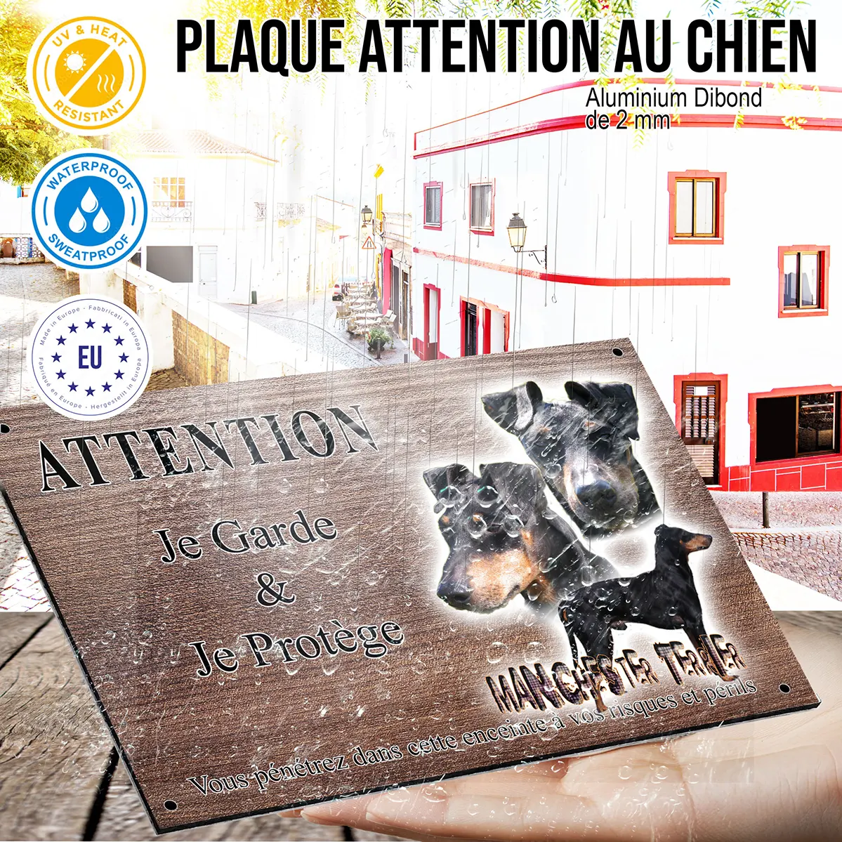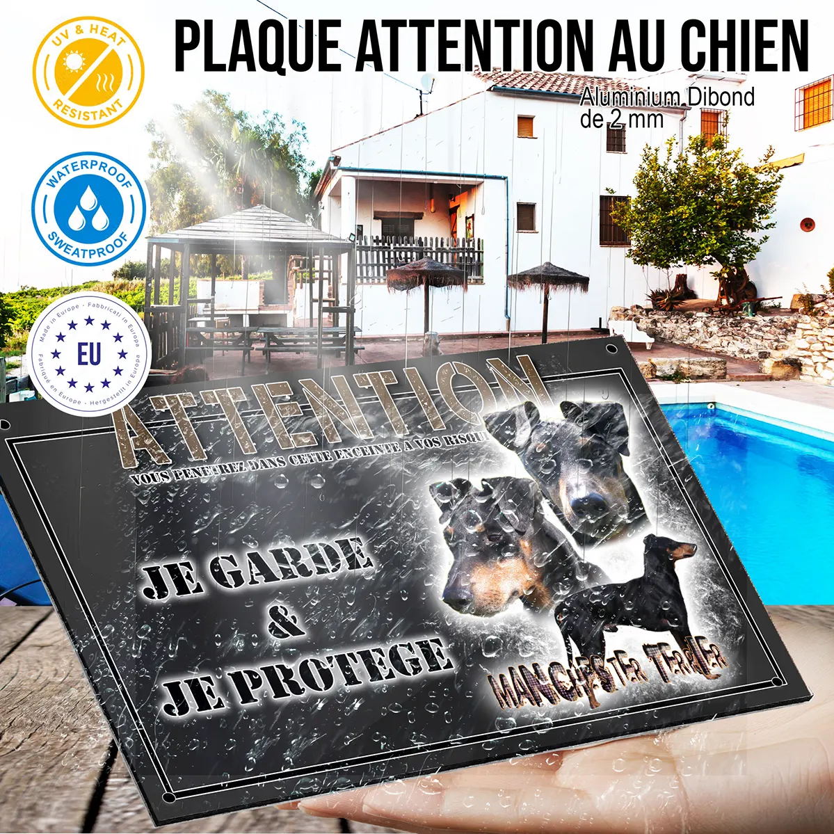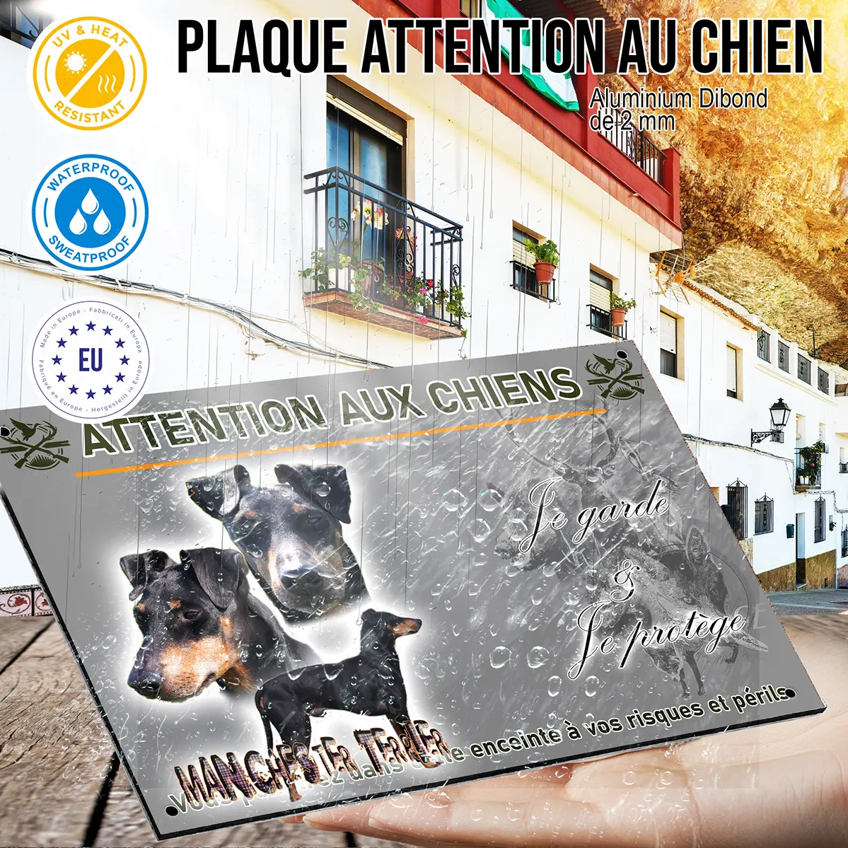 - Plaque Attention au chien terrier de manchester : signalétique claire et dissuasive