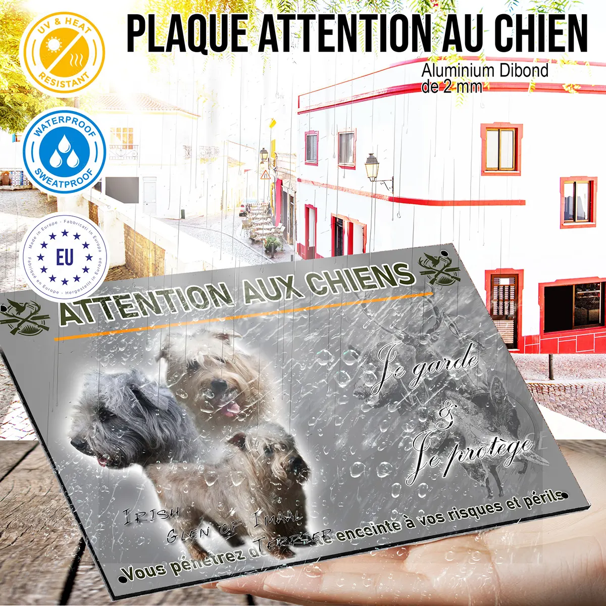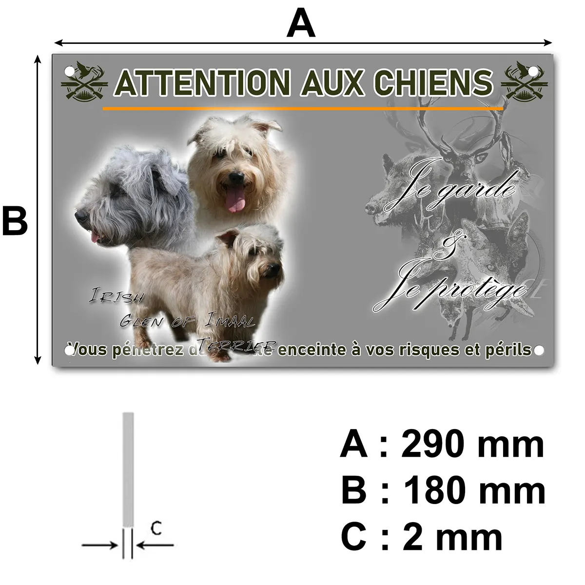 • Plaque Attention au chien Terrier irlandais Glen of Imaal : signalétique claire et dissuasive