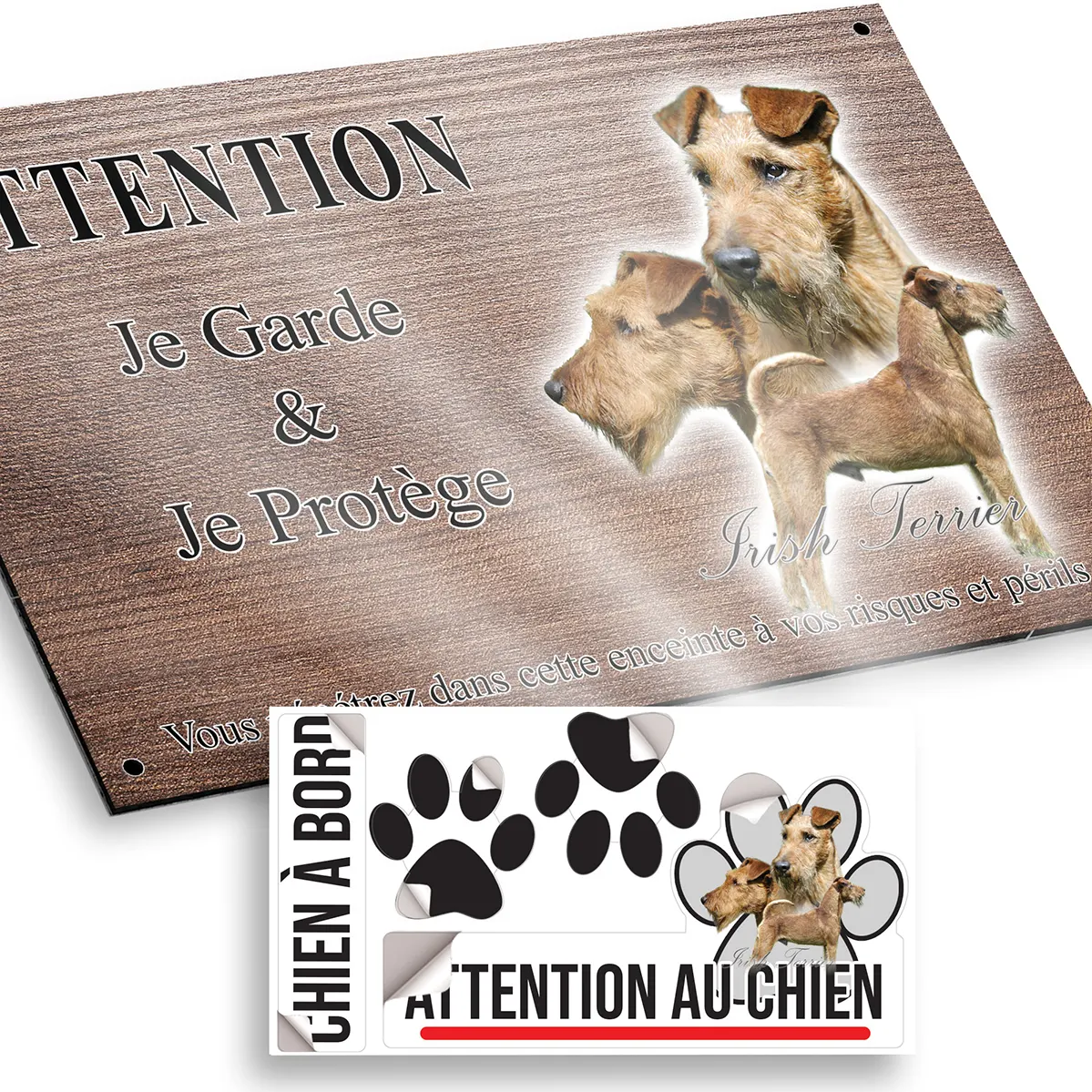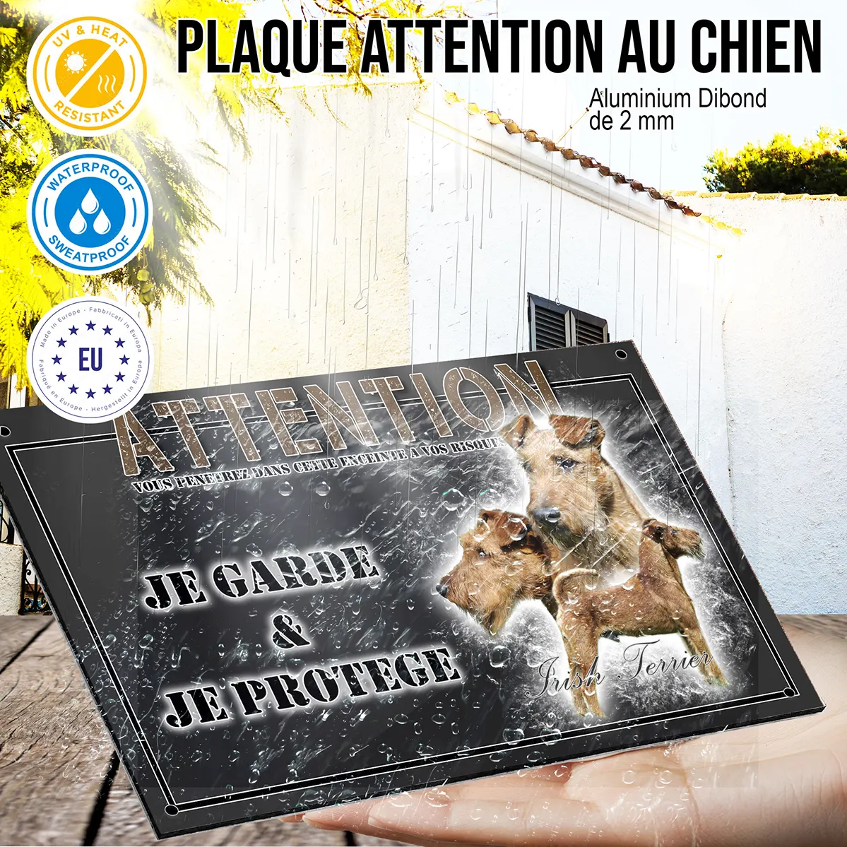 • Plaque Attention au chien terrier irlandais : signalétique claire et dissuasive