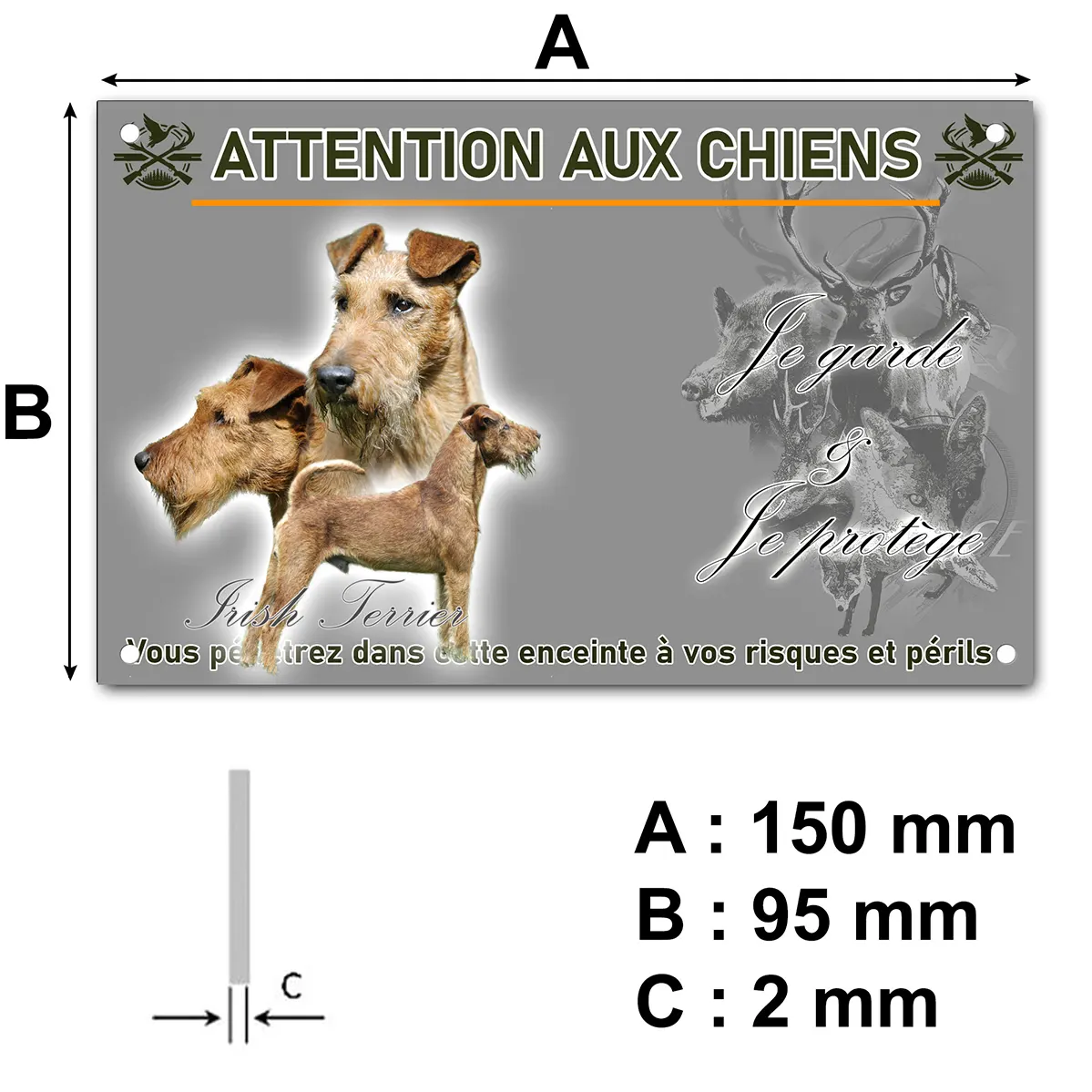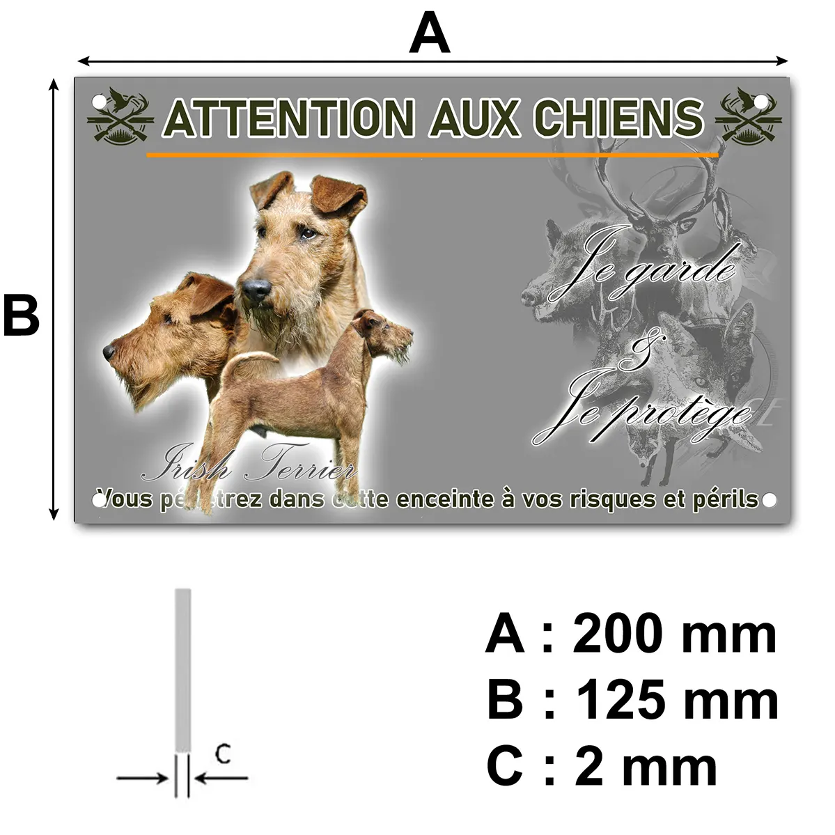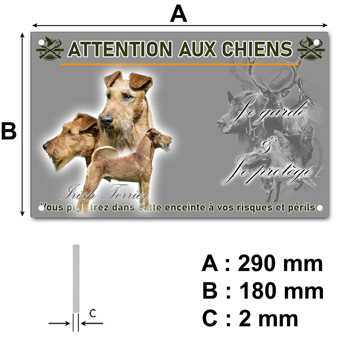 Plaque attention au chien Terrier Irlandais métal résistant extérieur