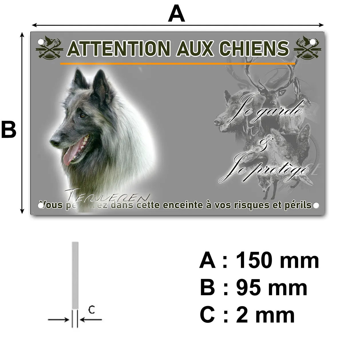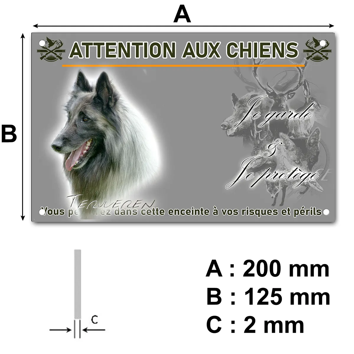 Plaque attention au chien Tervueren Eleveur métal résistant extérieur