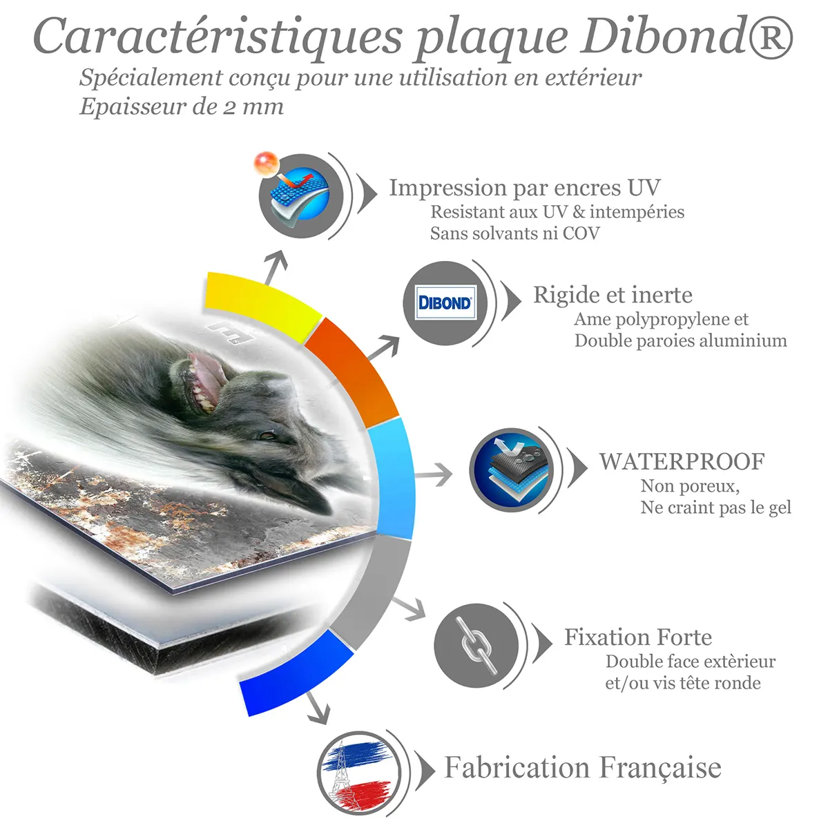 Oui, la plaque est fabriquée en aluminium Dibond de 2 mm et imprimée en UV. Elle ne craint ni la pluie, ni le soleil, ni le gel. Elle peut rester fixée dehors toute l’année sans perdre ses couleurs.