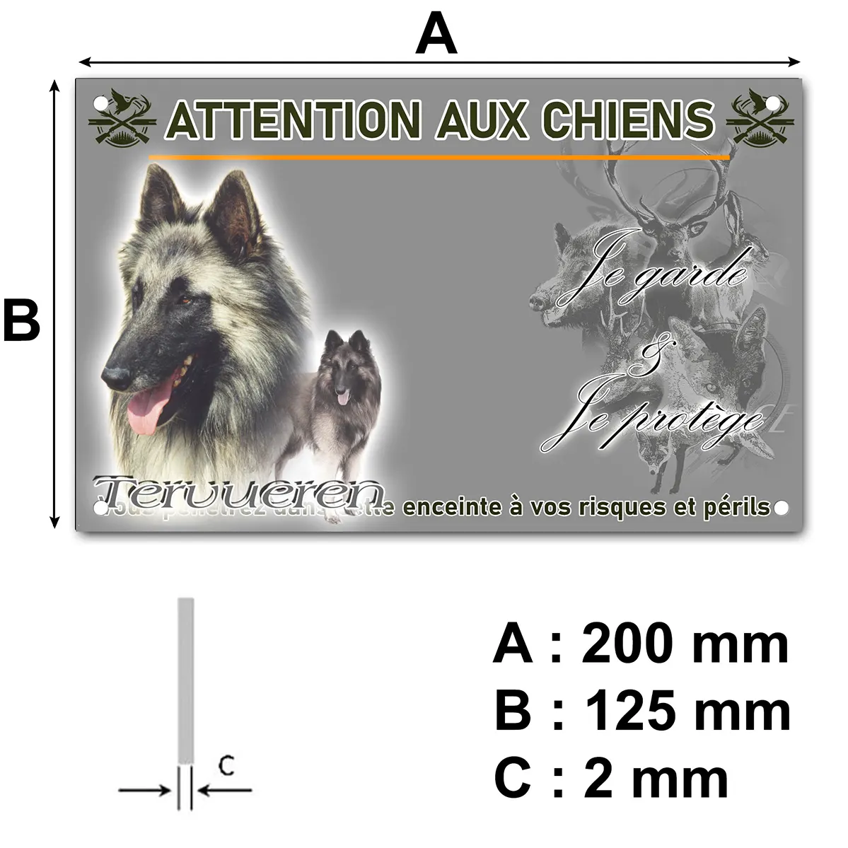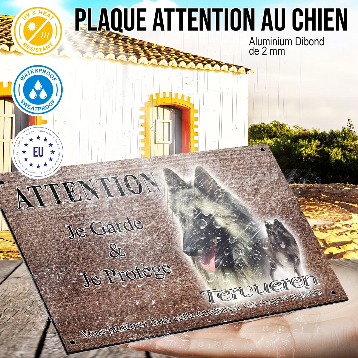 Plaque attention au chien Tervueren Sable métal résistant extérieur