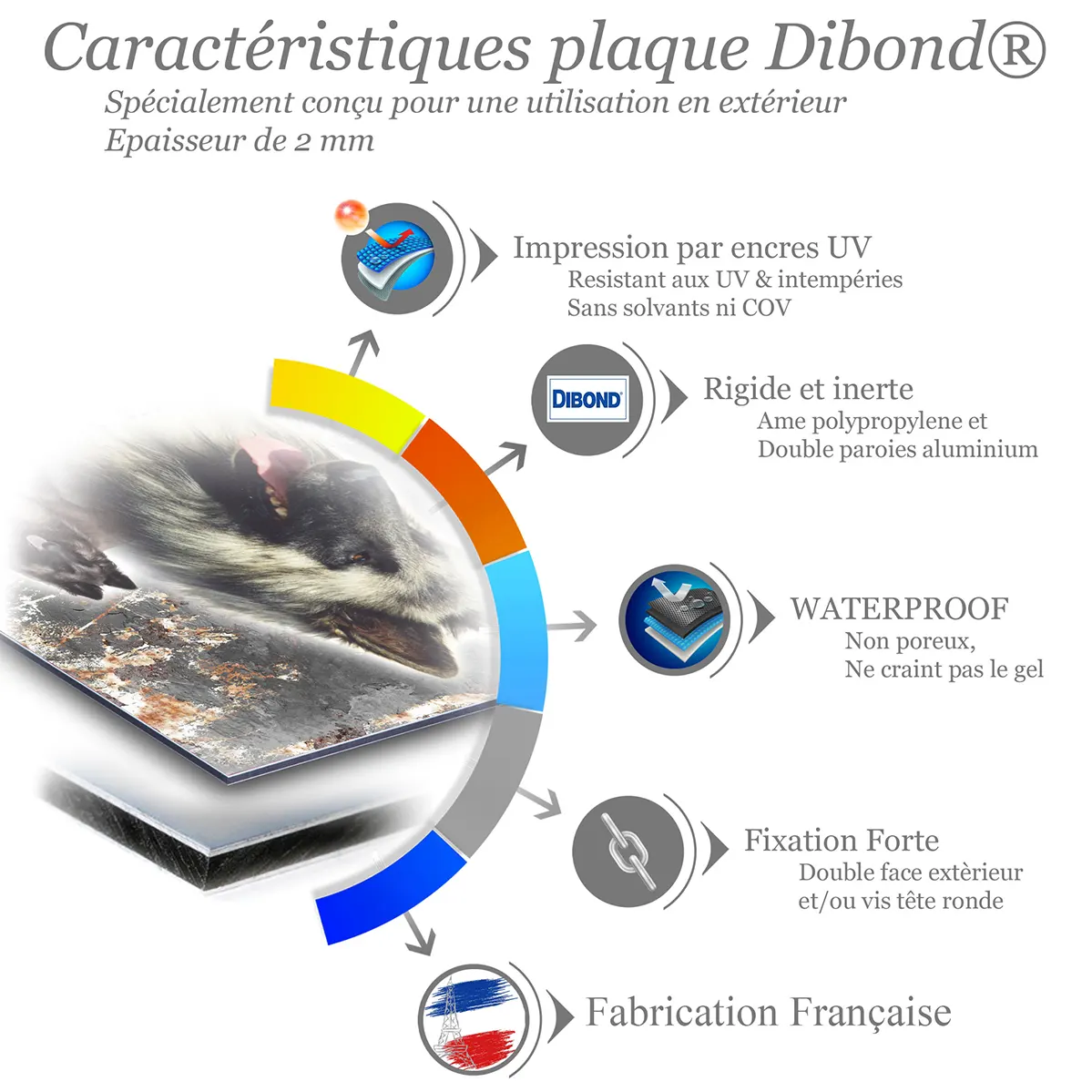 Oui, la plaque est fabriquée en aluminium Dibond de 2 mm et imprimée en UV. Elle ne craint ni la pluie, ni le soleil, ni le gel. Elle peut rester fixée dehors toute l’année sans perdre ses couleurs.