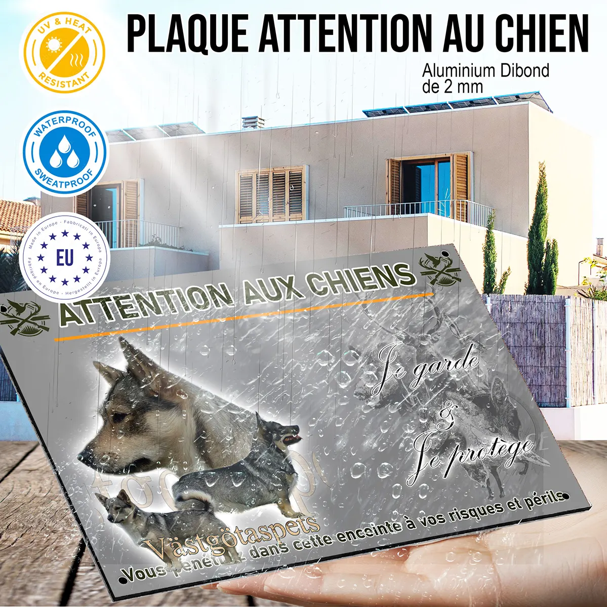 - Plaque Attention au chien vastgotaspets : signalétique claire et dissuasive
