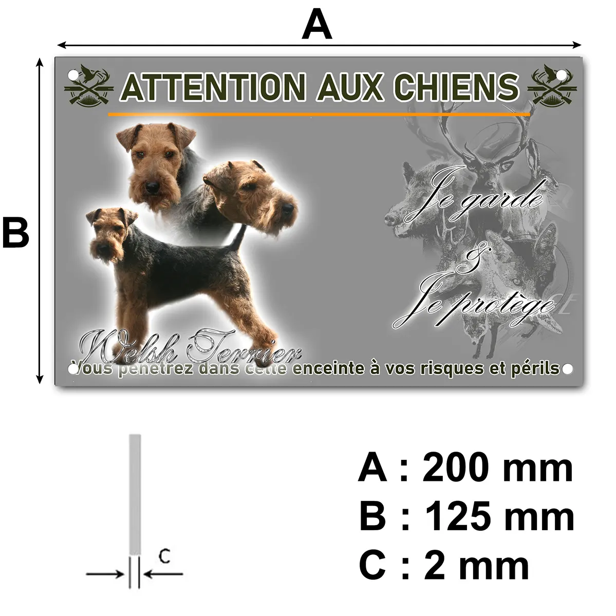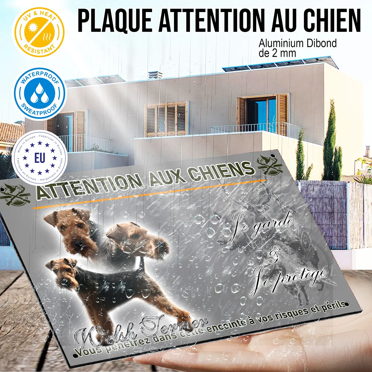 Plaque attention au chien Welsh Terrier métal résistant extérieur