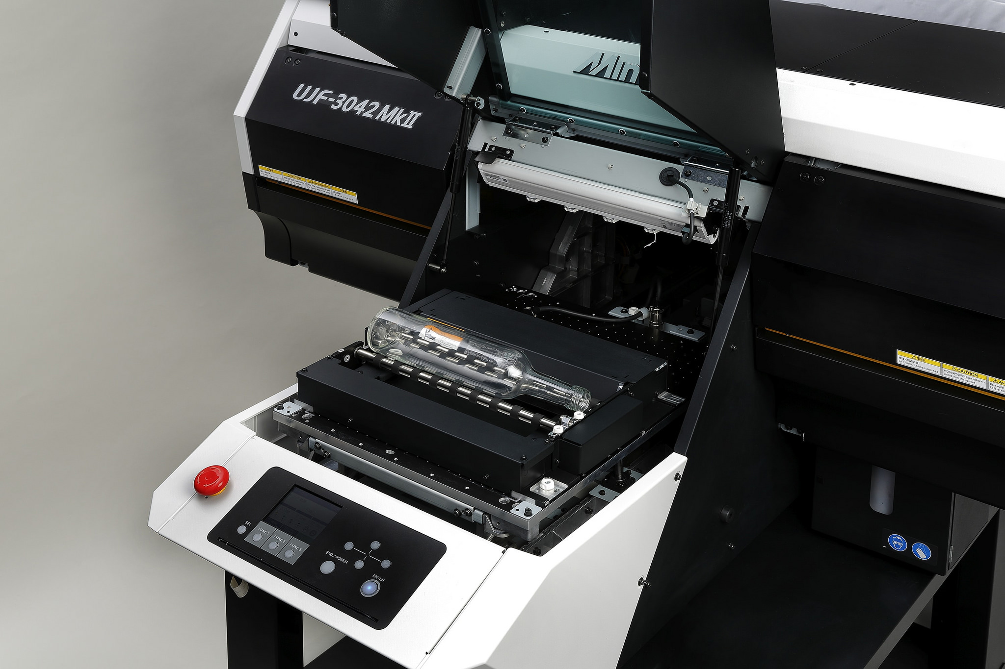 La UJF-3042 MKII utilise la technologie d’impression UV LED, offrant des avantages tels qu’une faible consommation d’énergie, un séchage instantané de l’encre et une grande adhérence sur une variété de matériaux.